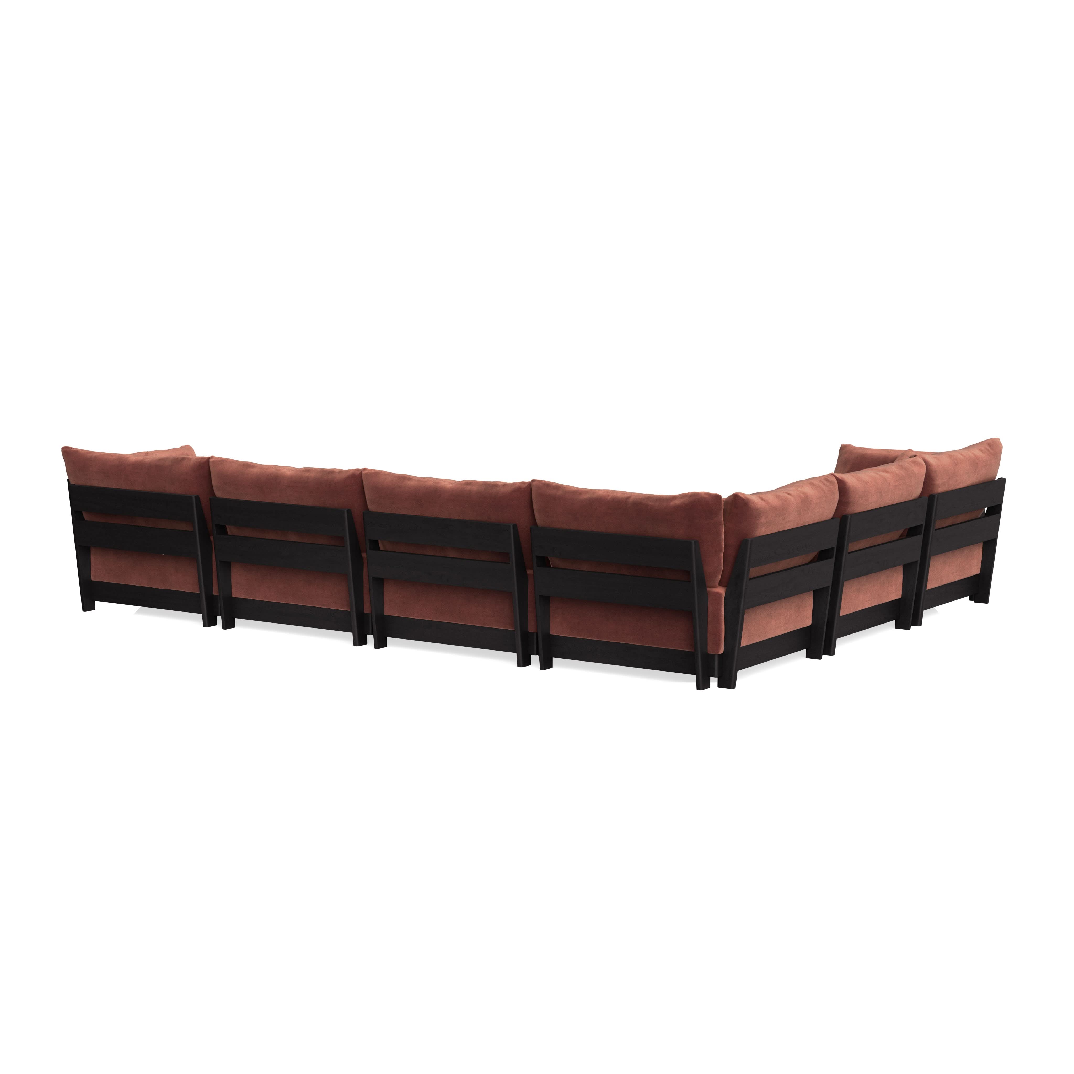 Modular Bondi Black 6-Seater Corner Sectional + Bench Ottoman in Spice | Memory Foam Blend