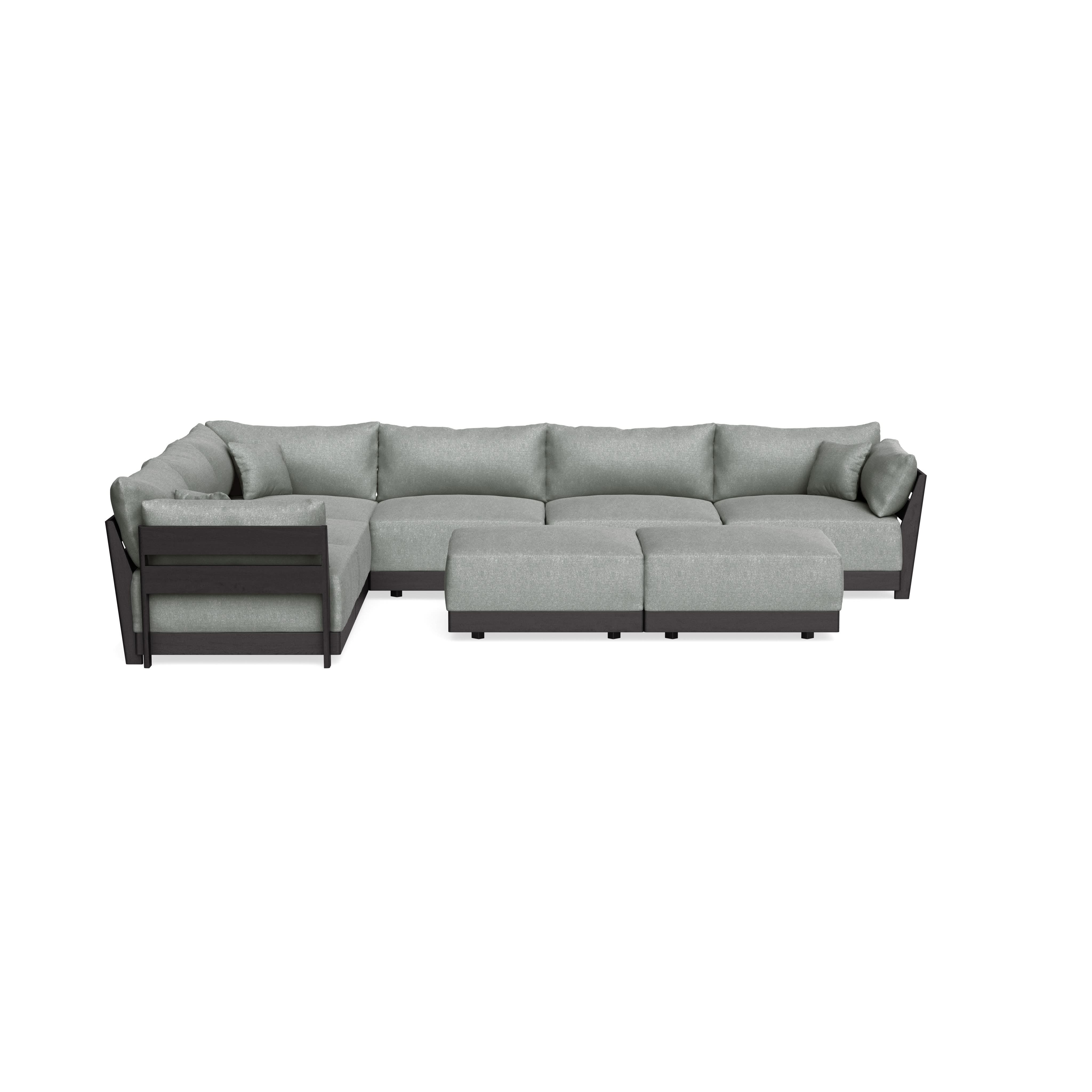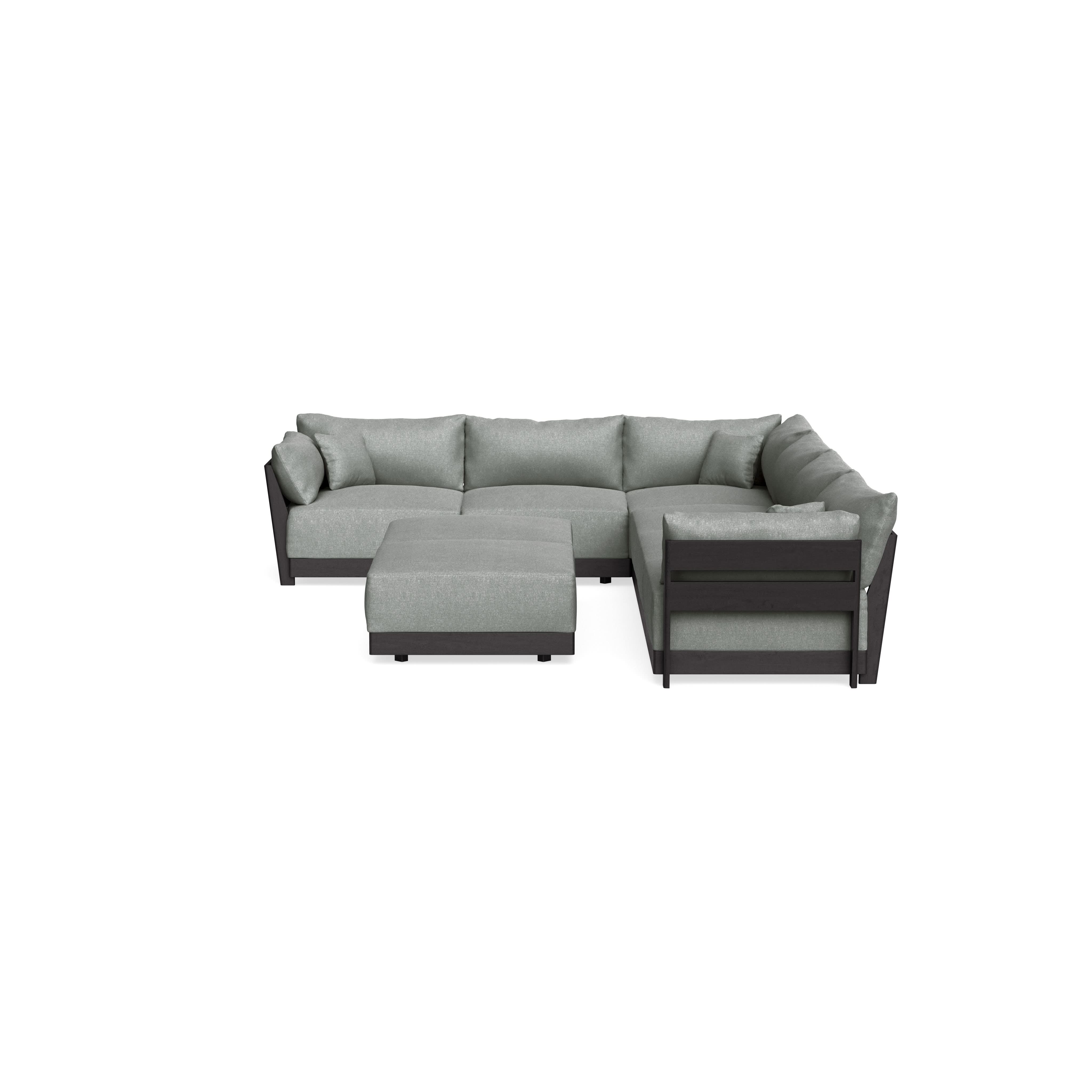 Modular Bondi Black 6-Seater Corner Sectional + Bench Ottoman in Storm Gray | Memory Foam Blend