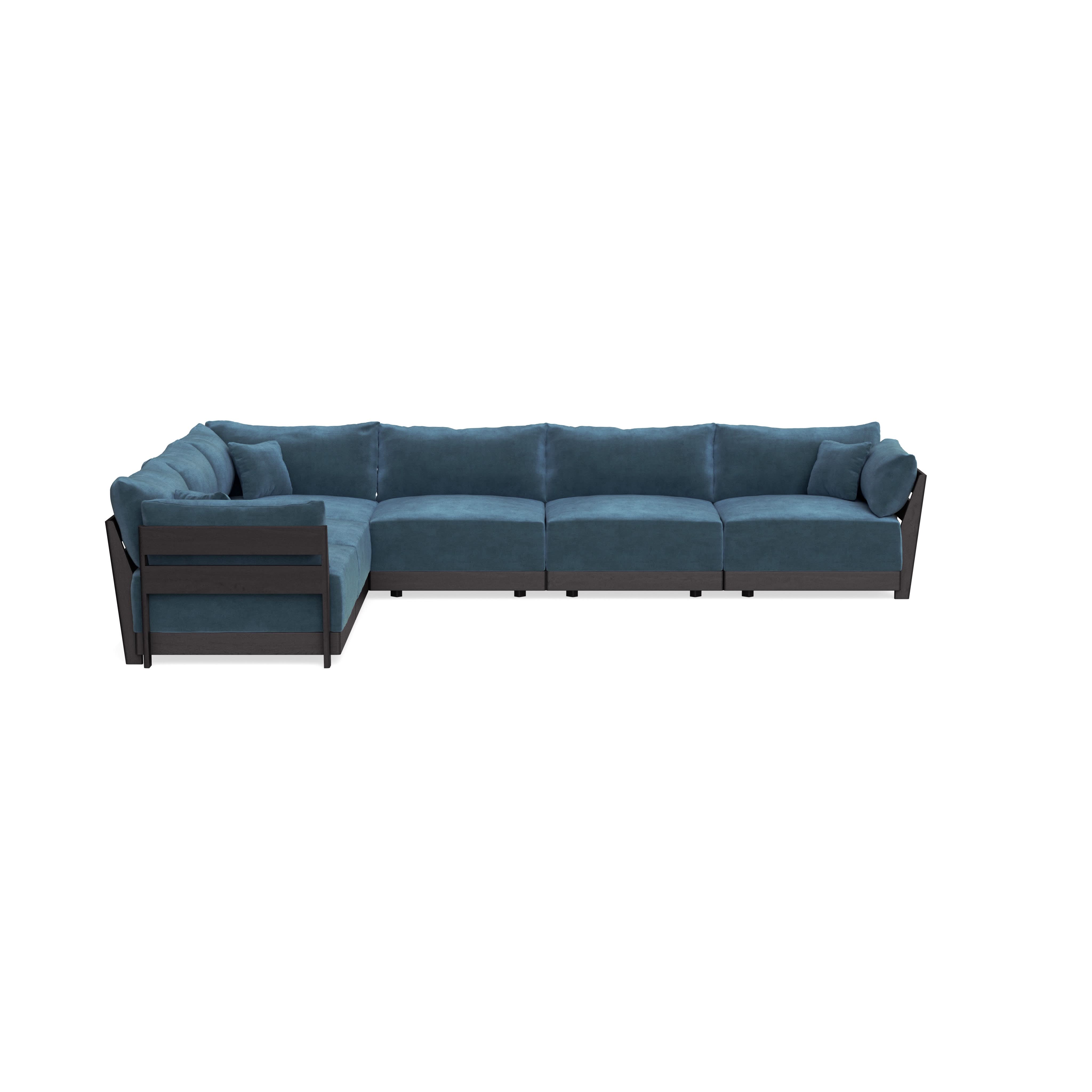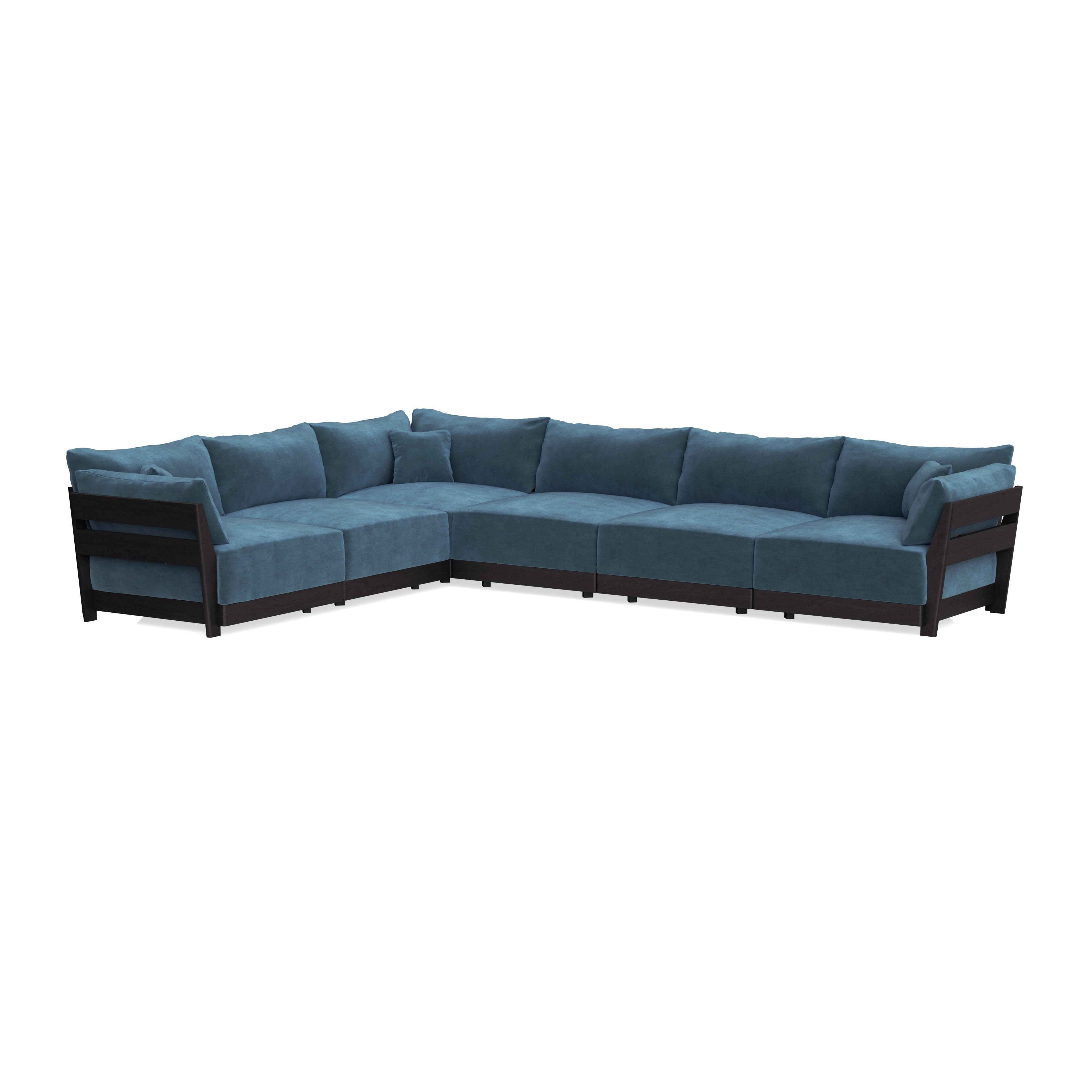 Modular Bondi Black 6-Seater Corner Sectional in Oxford Blue | Classic Blend
