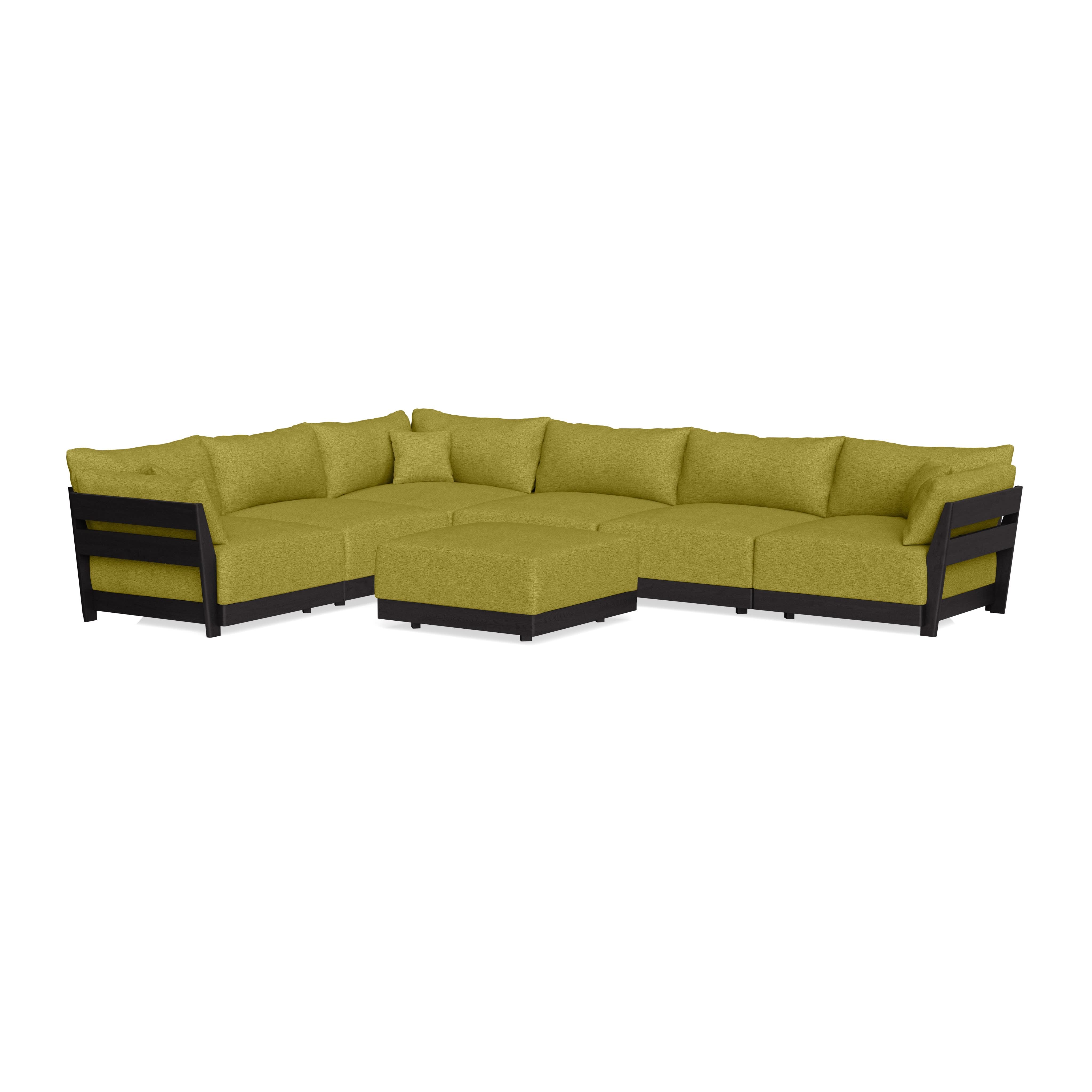 Modular Bondi Black 6-Seater Corner Sectional + Ottoman in Avocado | Classic Blend