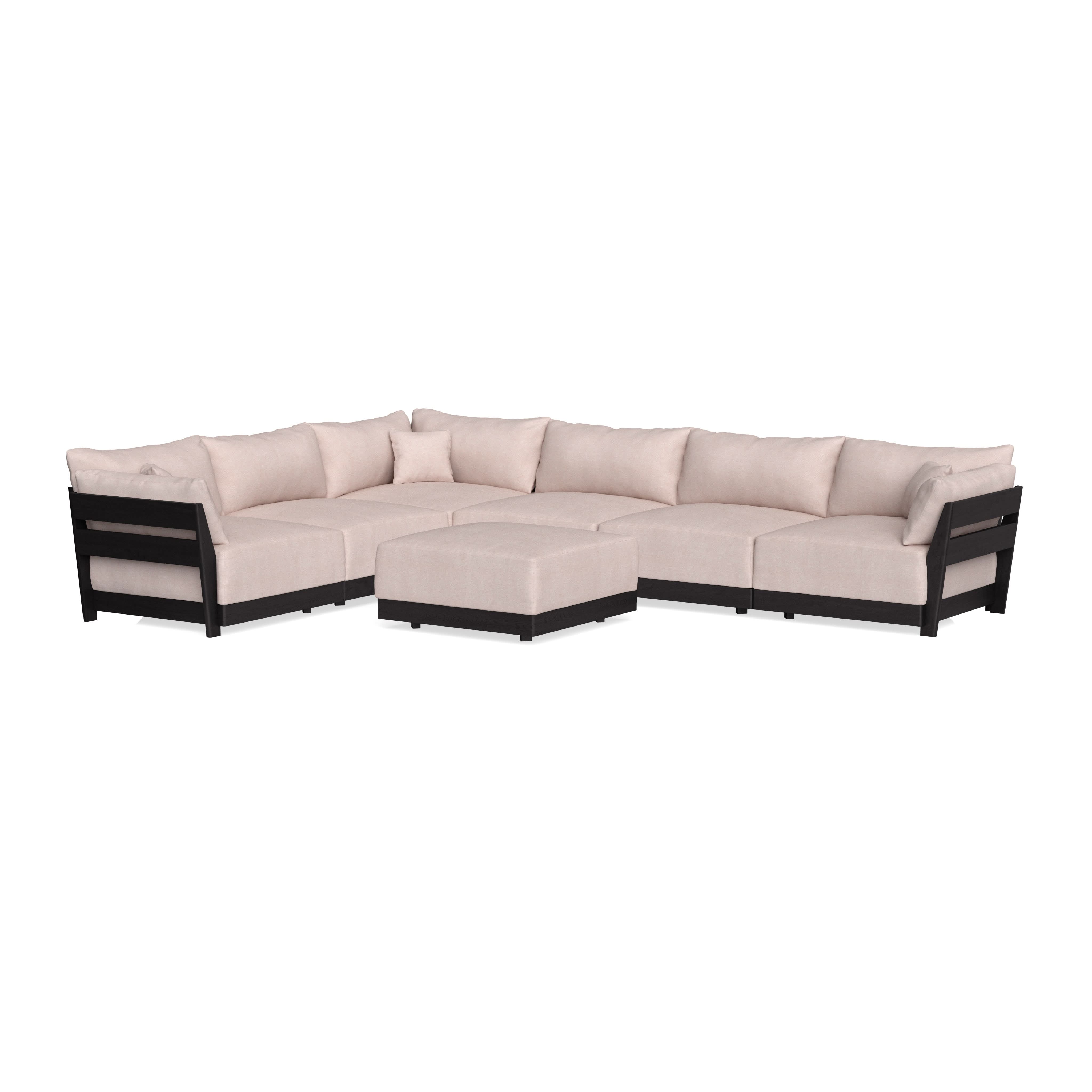 Modular Bondi Black 6-Seater Corner Sectional + Ottoman in Blush | Classic Blend