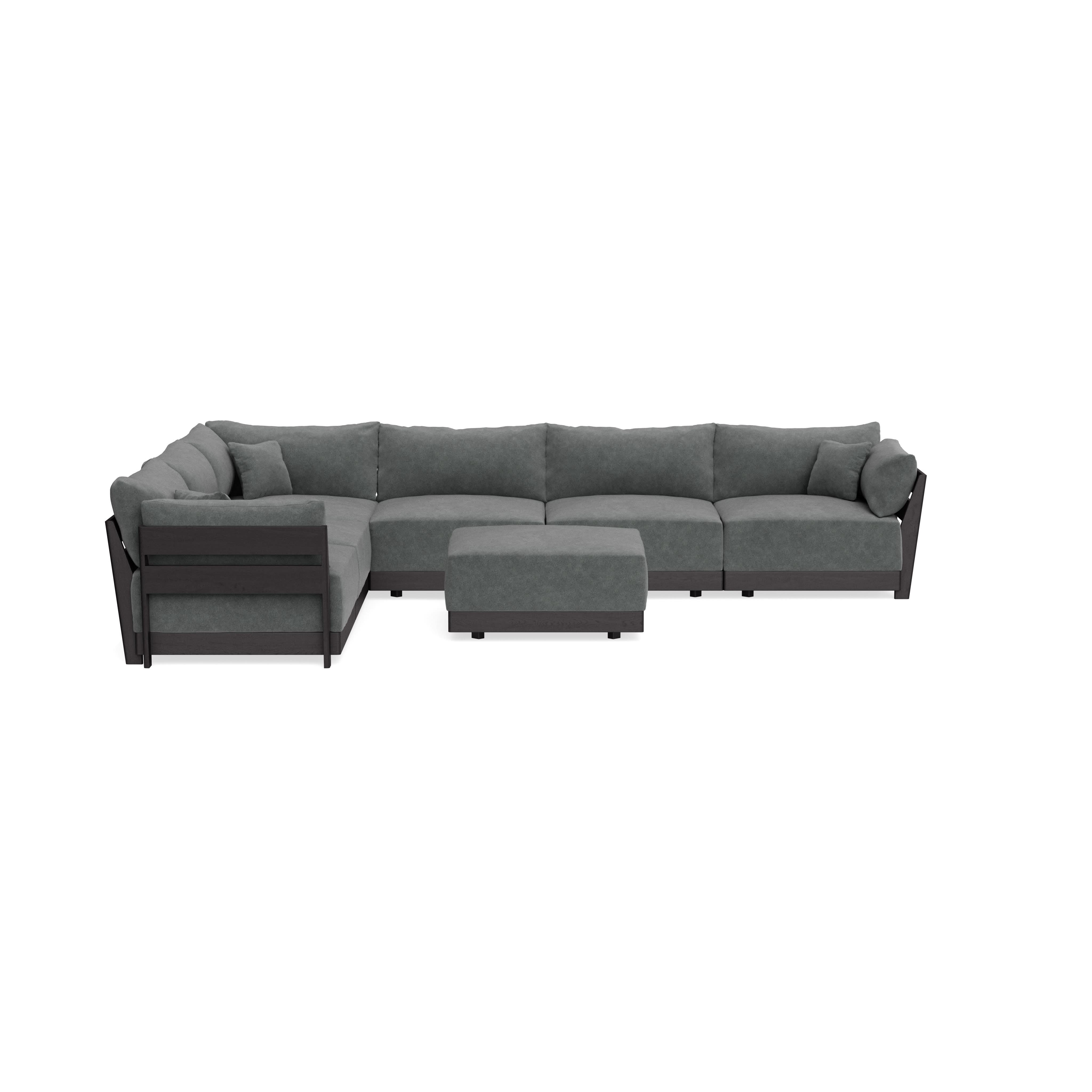 Modular Bondi Black 6-Seater Corner Sectional + Ottoman in Chimney Gray | Classic Blend