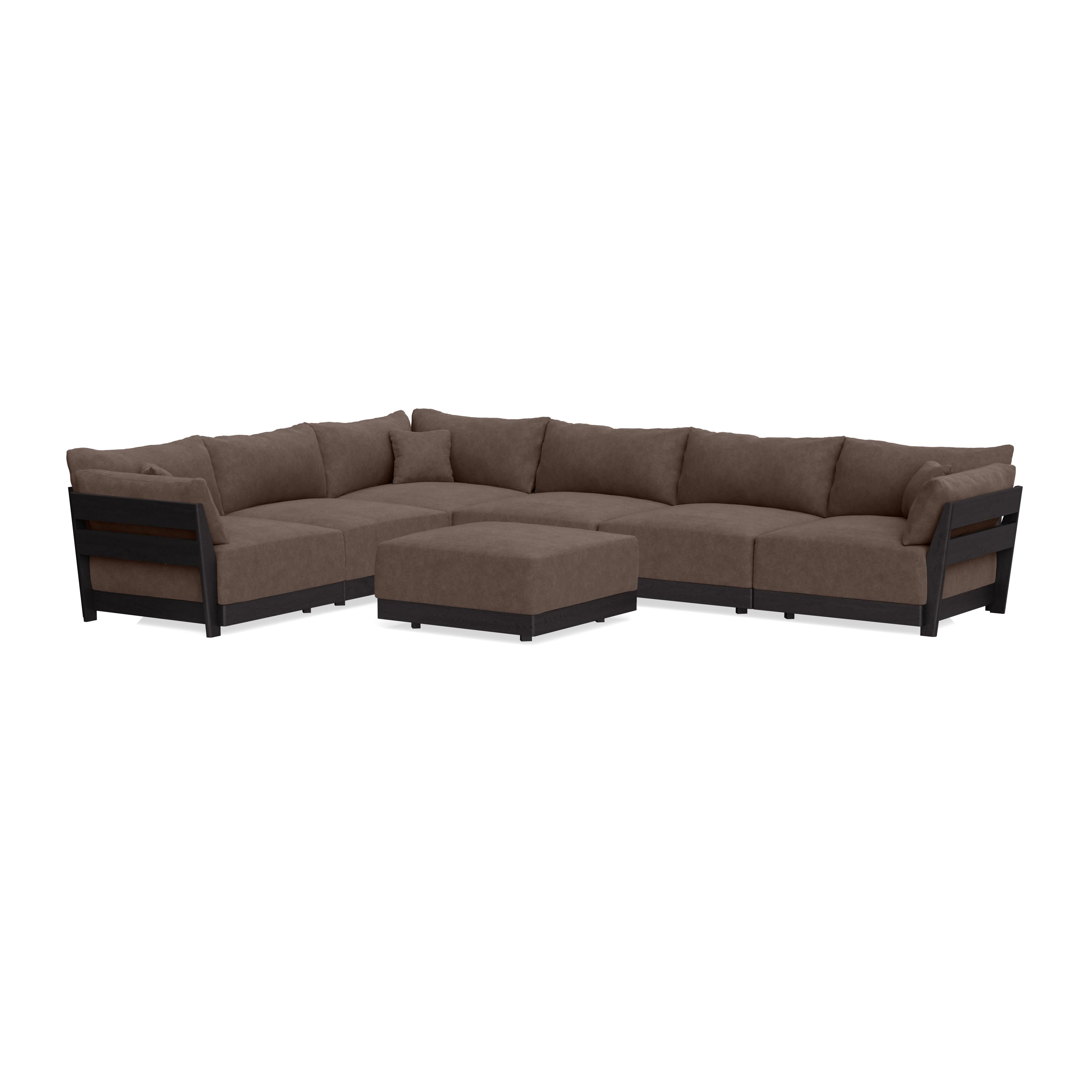 Modular Bondi Black 6-Seater Corner Sectional + Ottoman in Chocolate | Memory Foam Blend