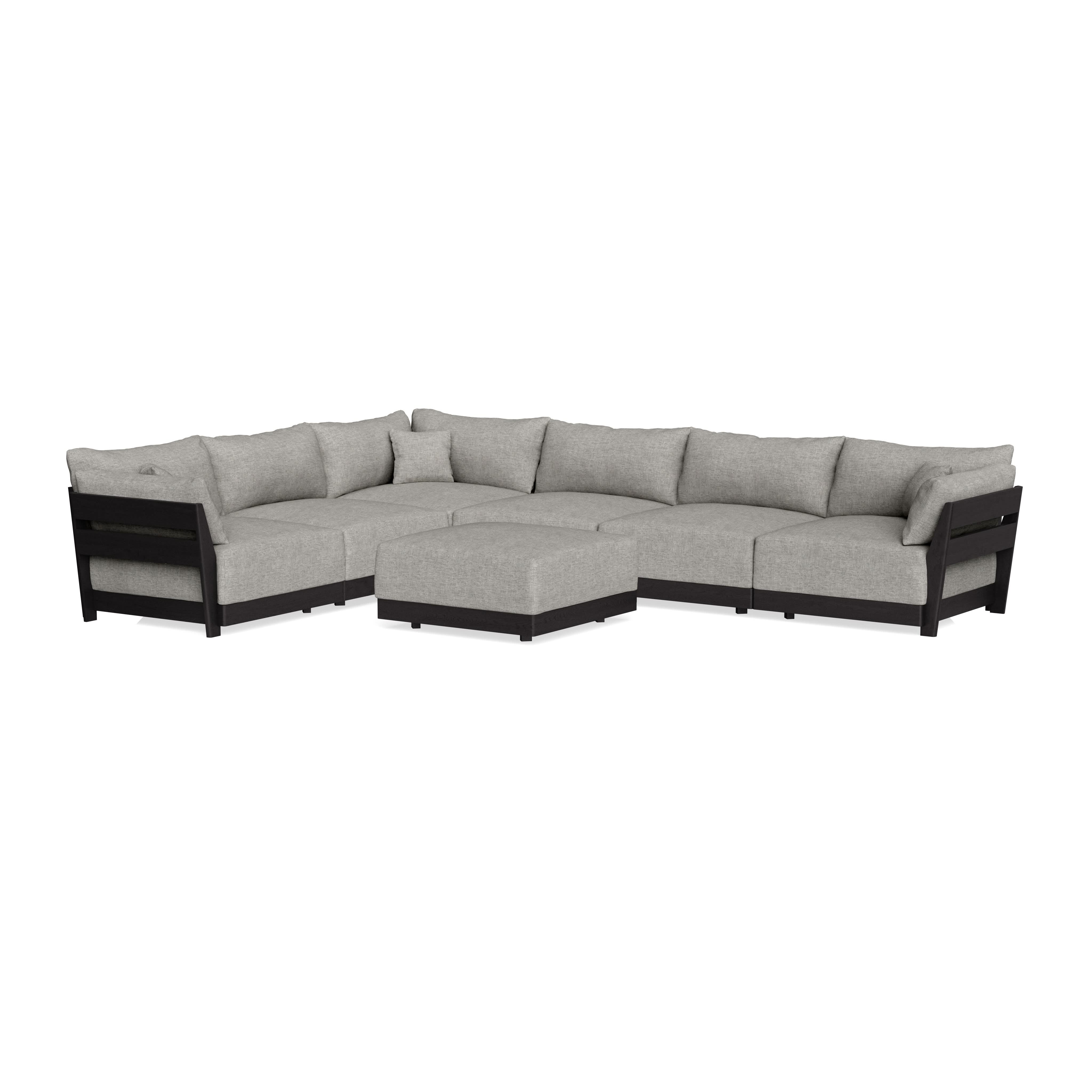 Modular Bondi Black 6-Seater Corner Sectional + Ottoman in Fog | Classic Blend