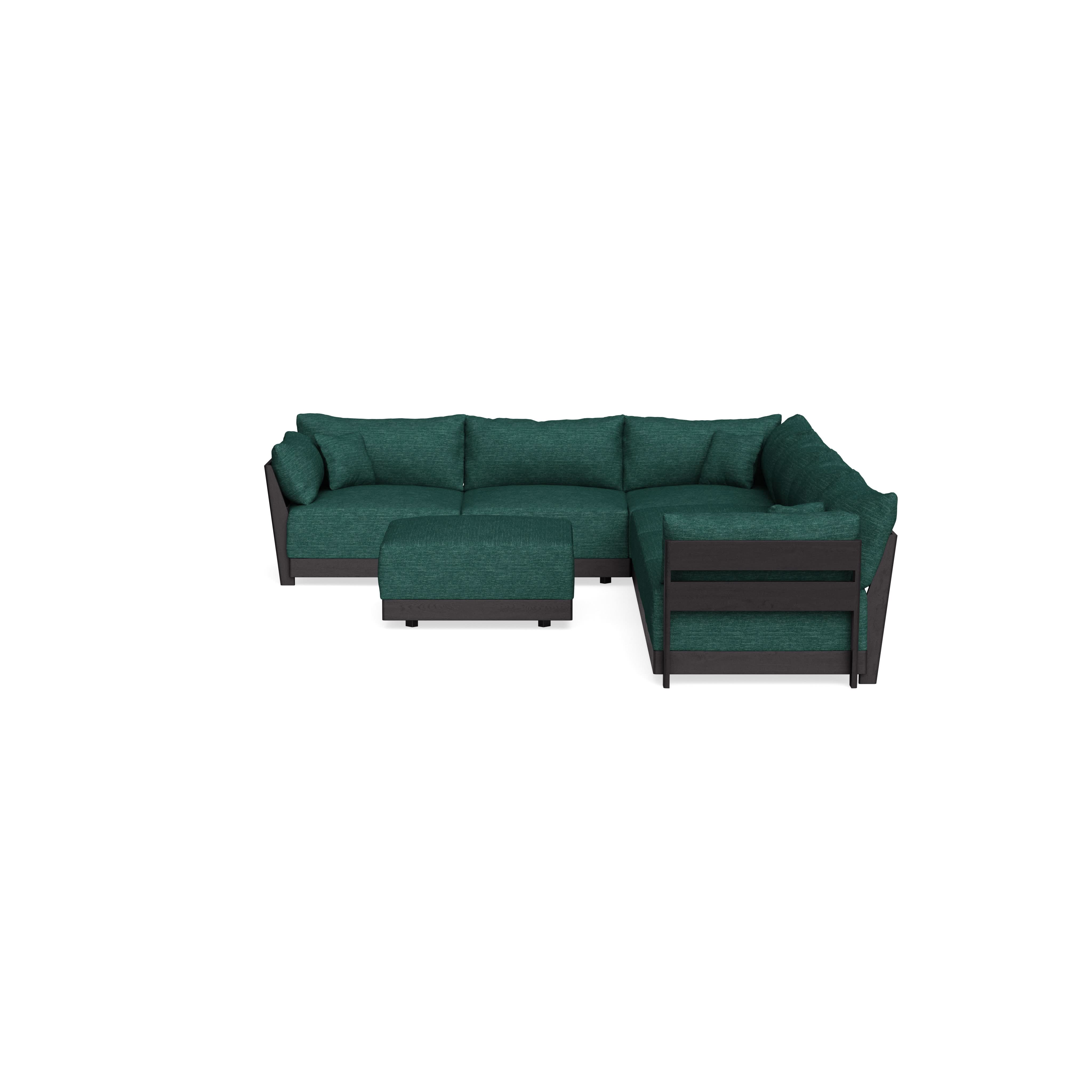 Modular Bondi Black 6-Seater Corner Sectional + Ottoman in Forest Green | Memory Foam Blend