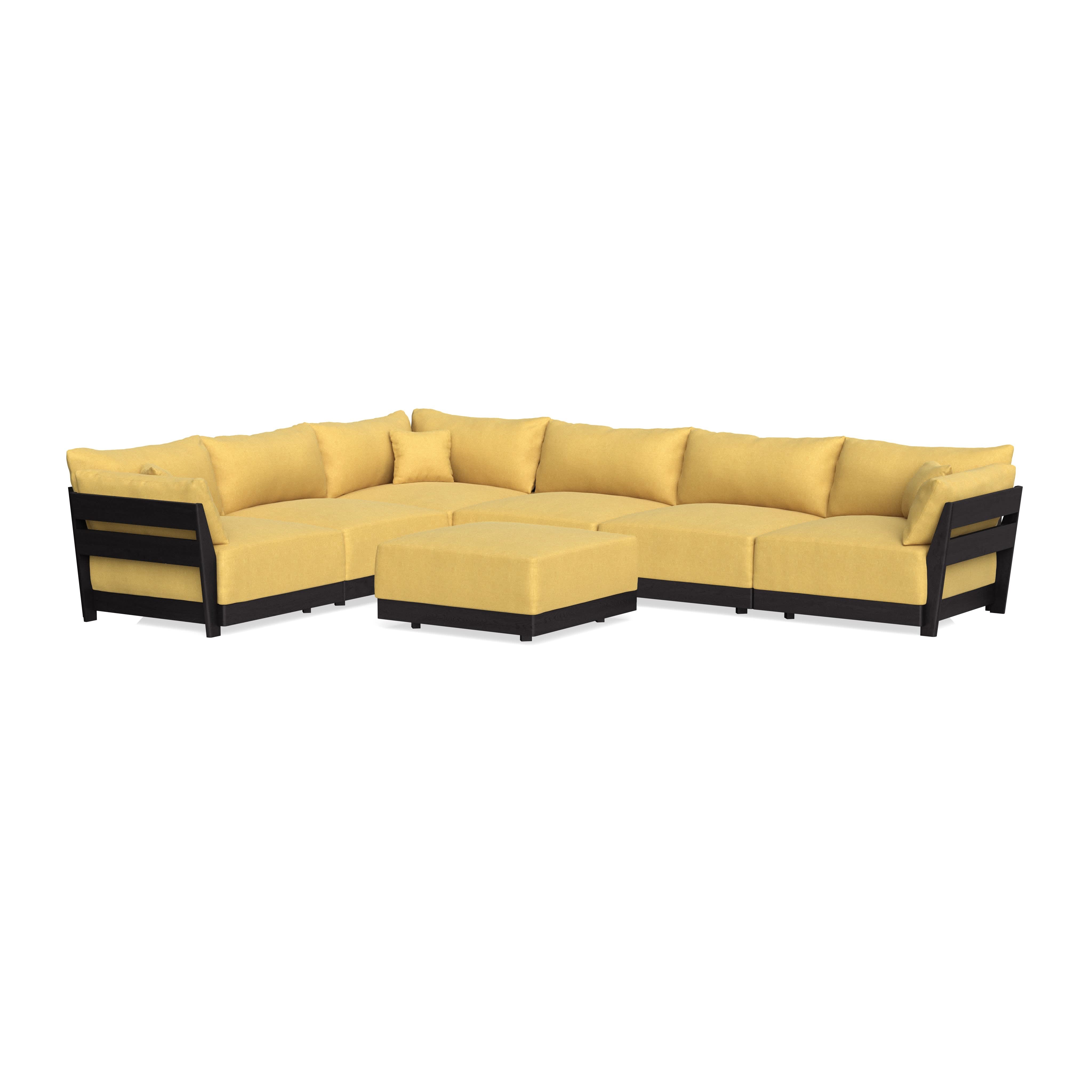 Modular Bondi Black 6-Seater Corner Sectional + Ottoman in Goldenrod | Memory Foam Blend