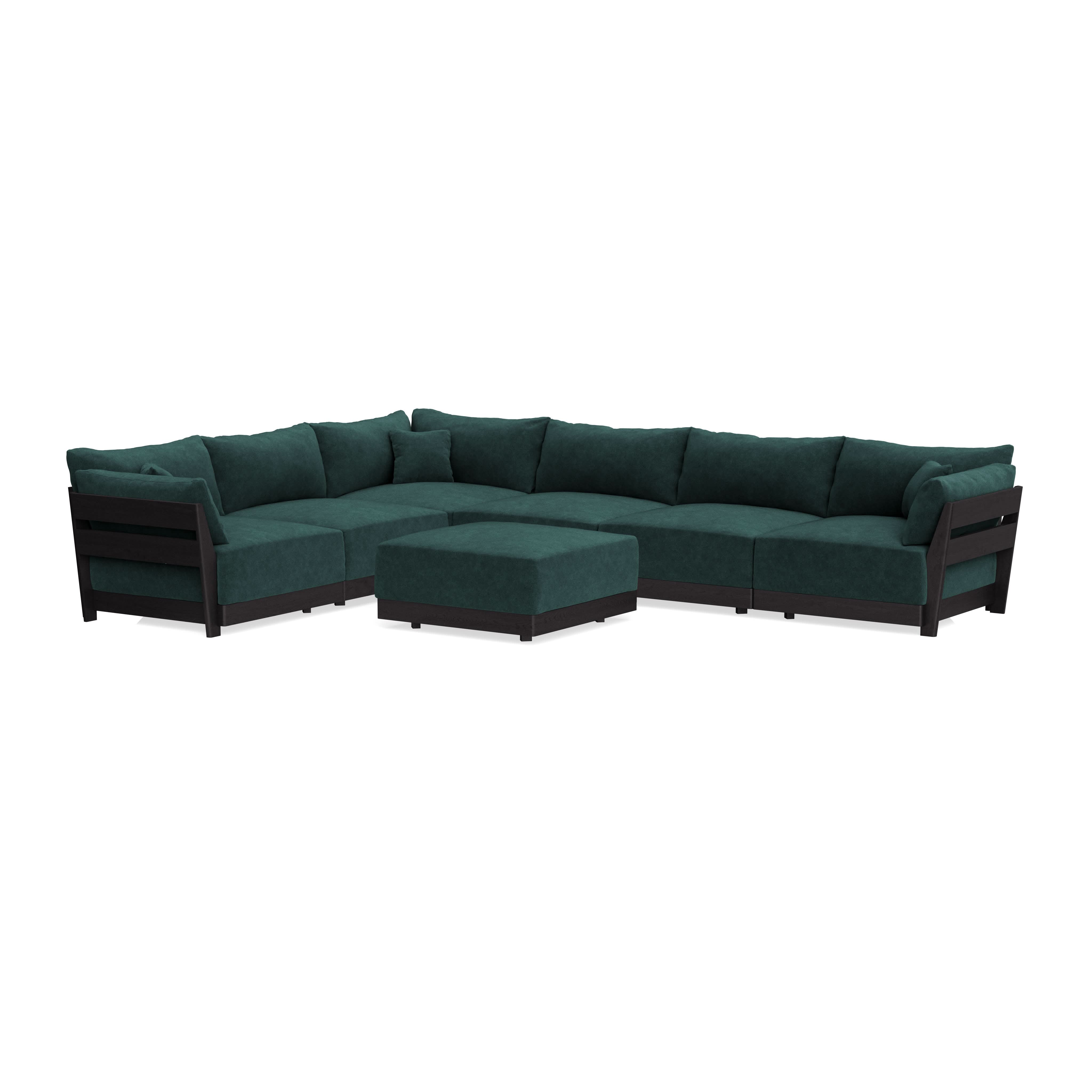 Modular Bondi Black 6-Seater Corner Sectional + Ottoman in Harbor Blue | Classic Blend