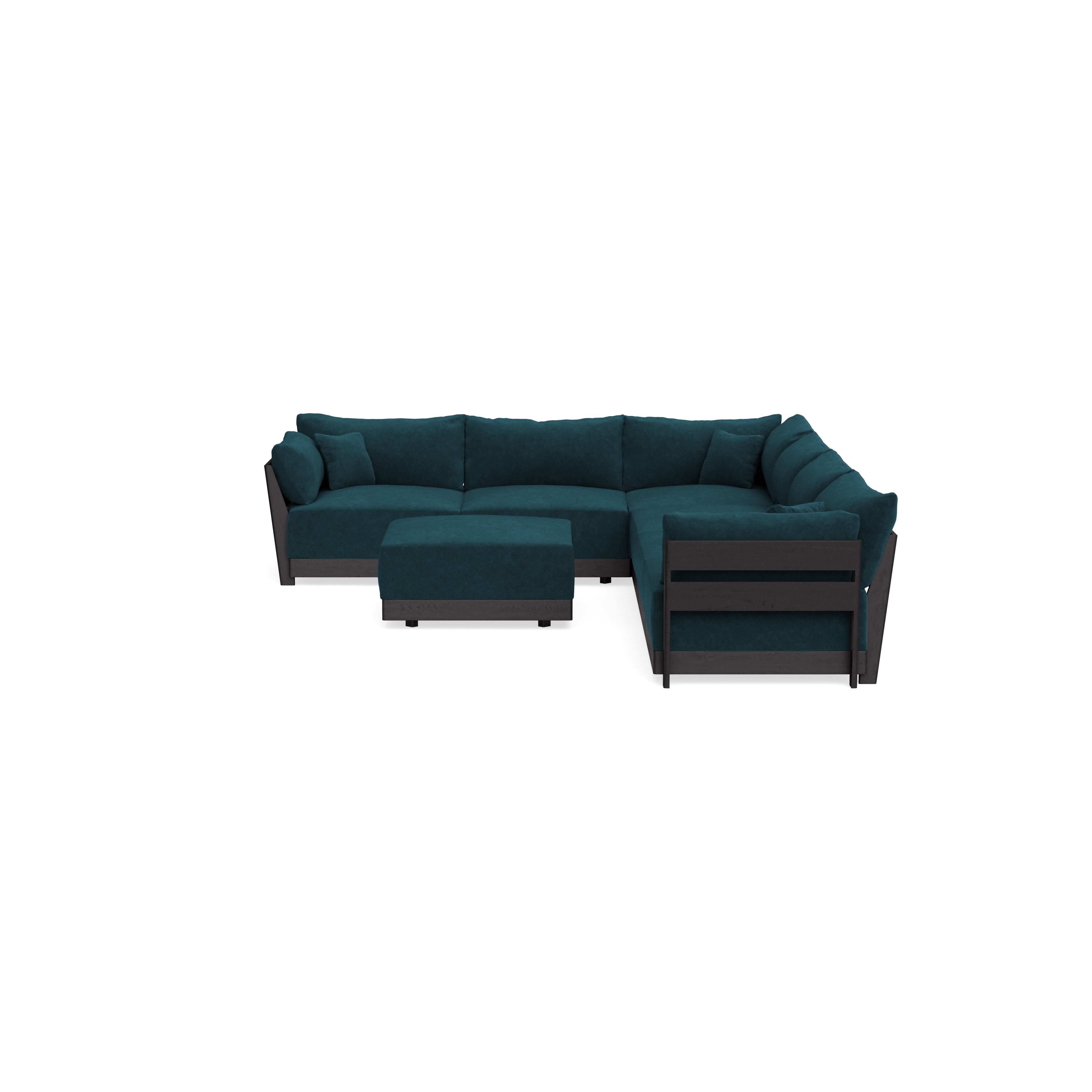 Modular Bondi Black 6-Seater Corner Sectional + Ottoman in Indigo | Memory Foam Blend