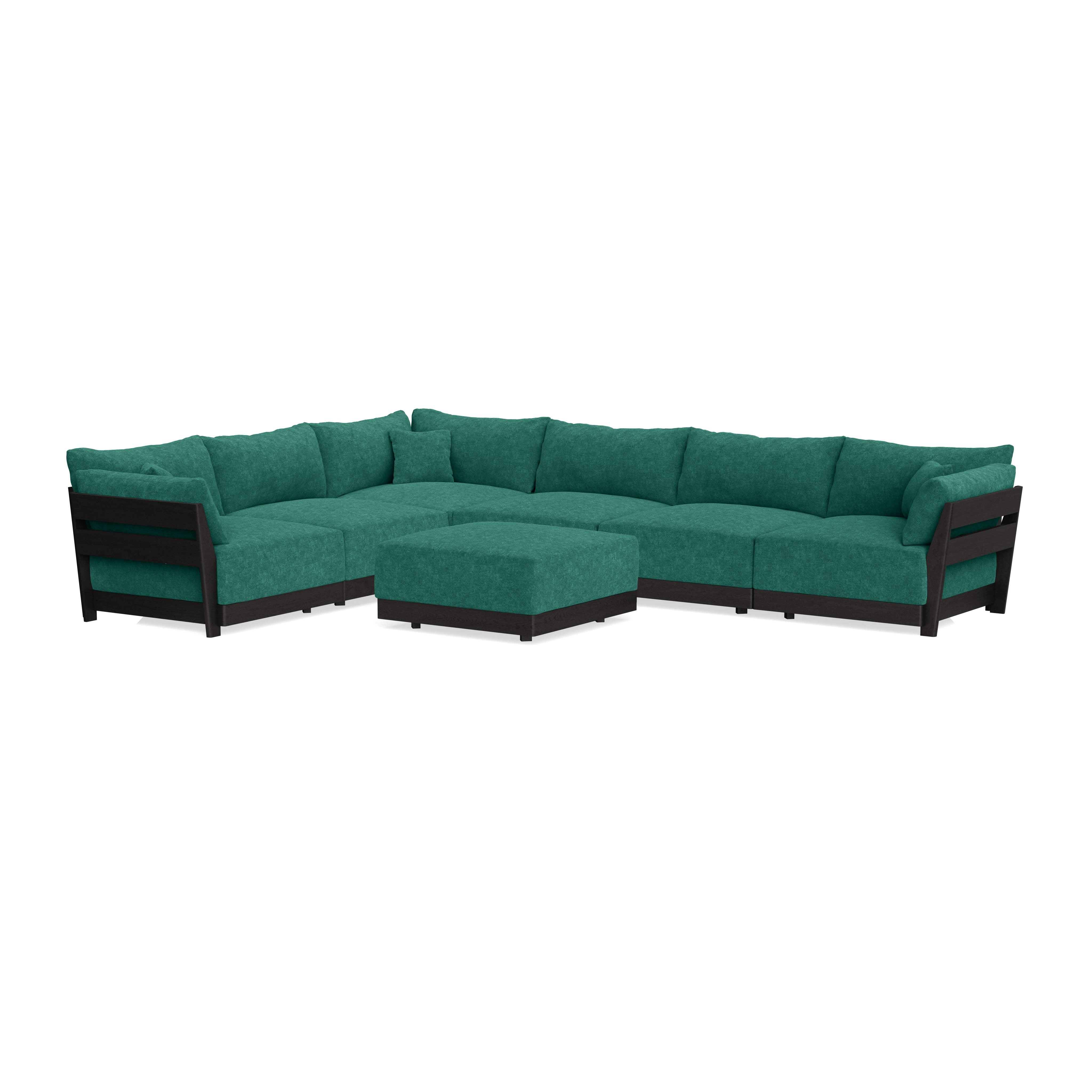 Modular Bondi Black 6-Seater Corner Sectional + Ottoman in Jade Green | Memory Foam Blend
