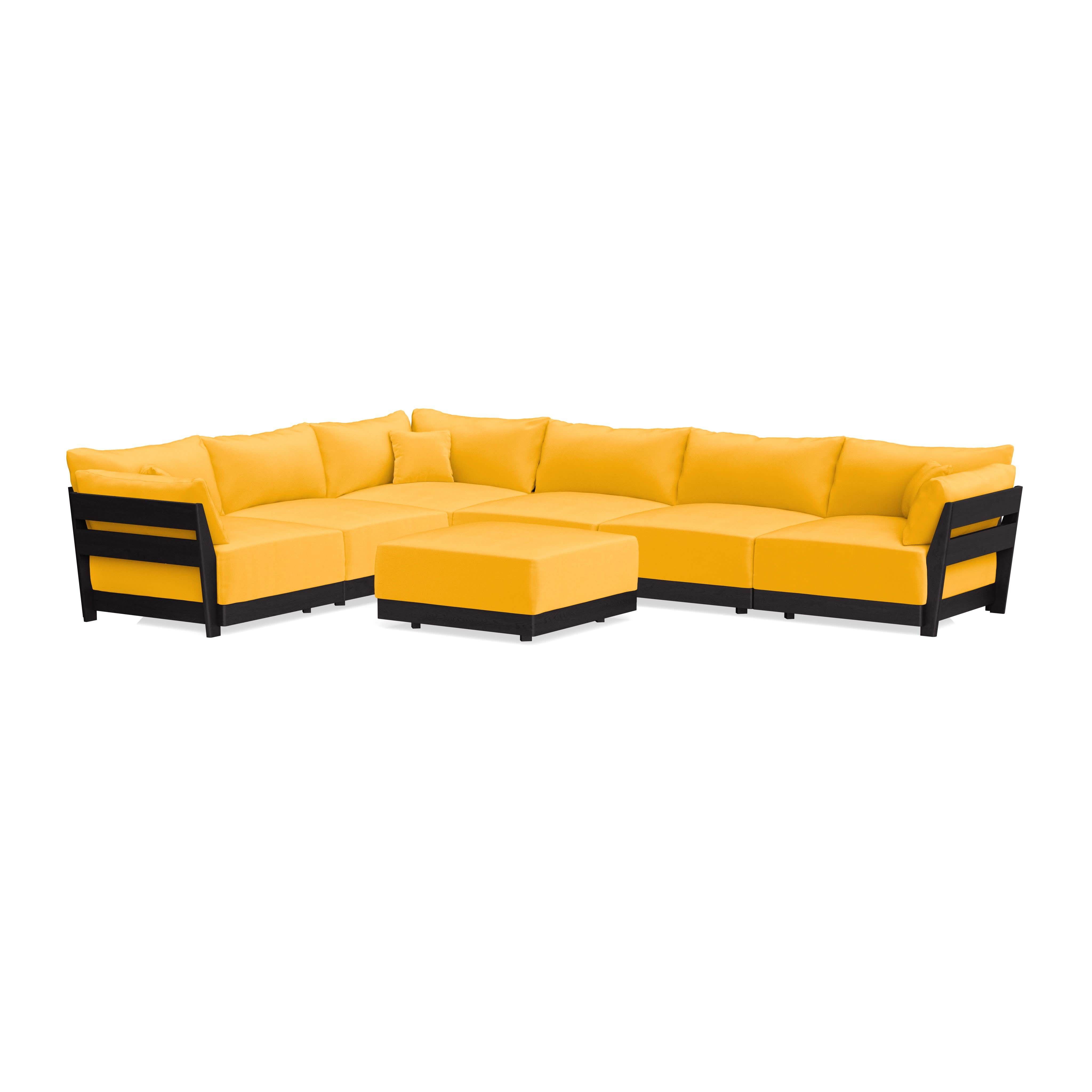 Modular Bondi Black 6-Seater Corner Sectional + Ottoman in Marigold | Classic Blend