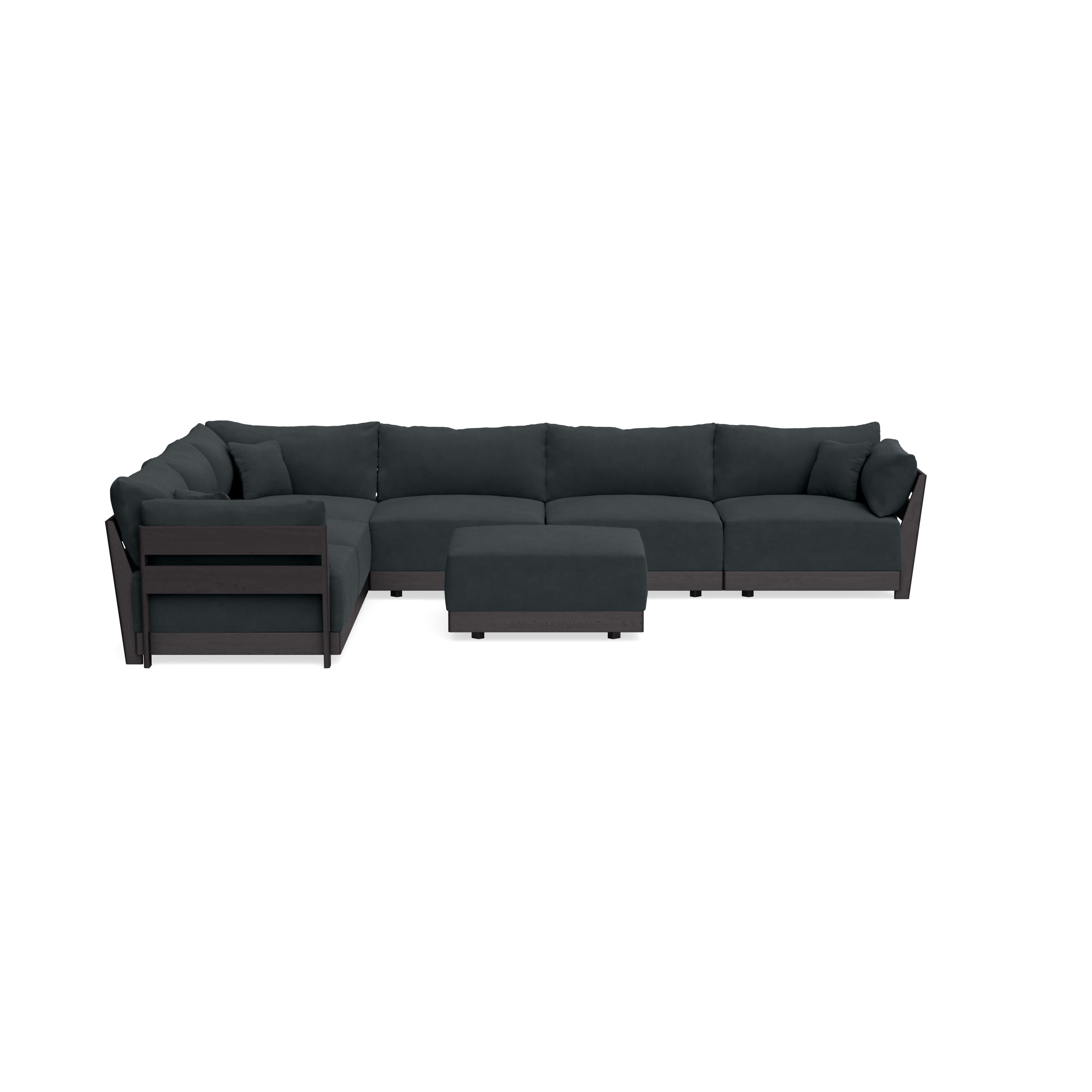 Modular Bondi Black 6-Seater Corner Sectional + Ottoman in Obsidian | Classic Blend