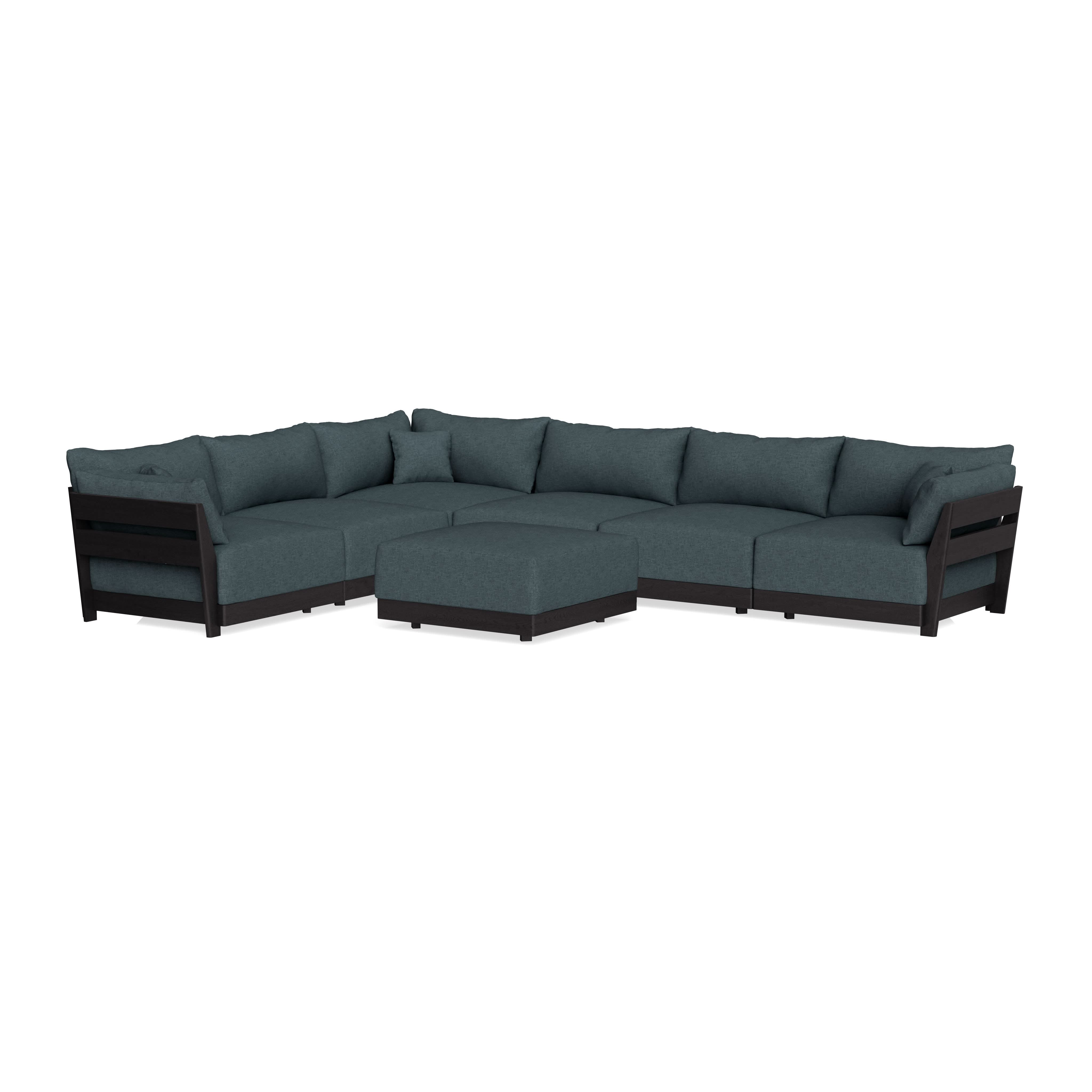 Modular Bondi Black 6-Seater Corner Sectional + Ottoman in Ocean Gray | Classic Blend