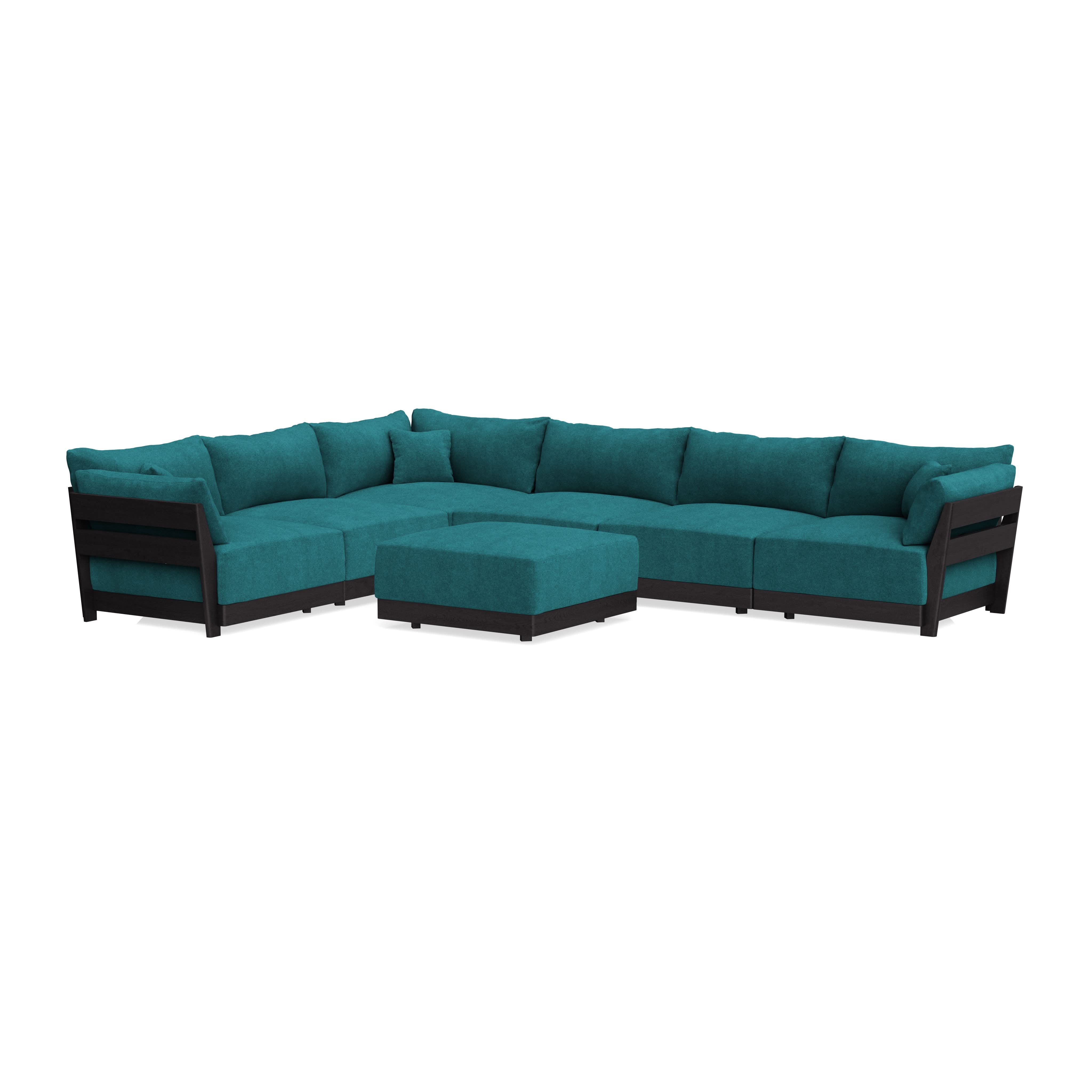 Modular Bondi Black 6-Seater Corner Sectional + Ottoman in Ocean | Memory Foam Blend