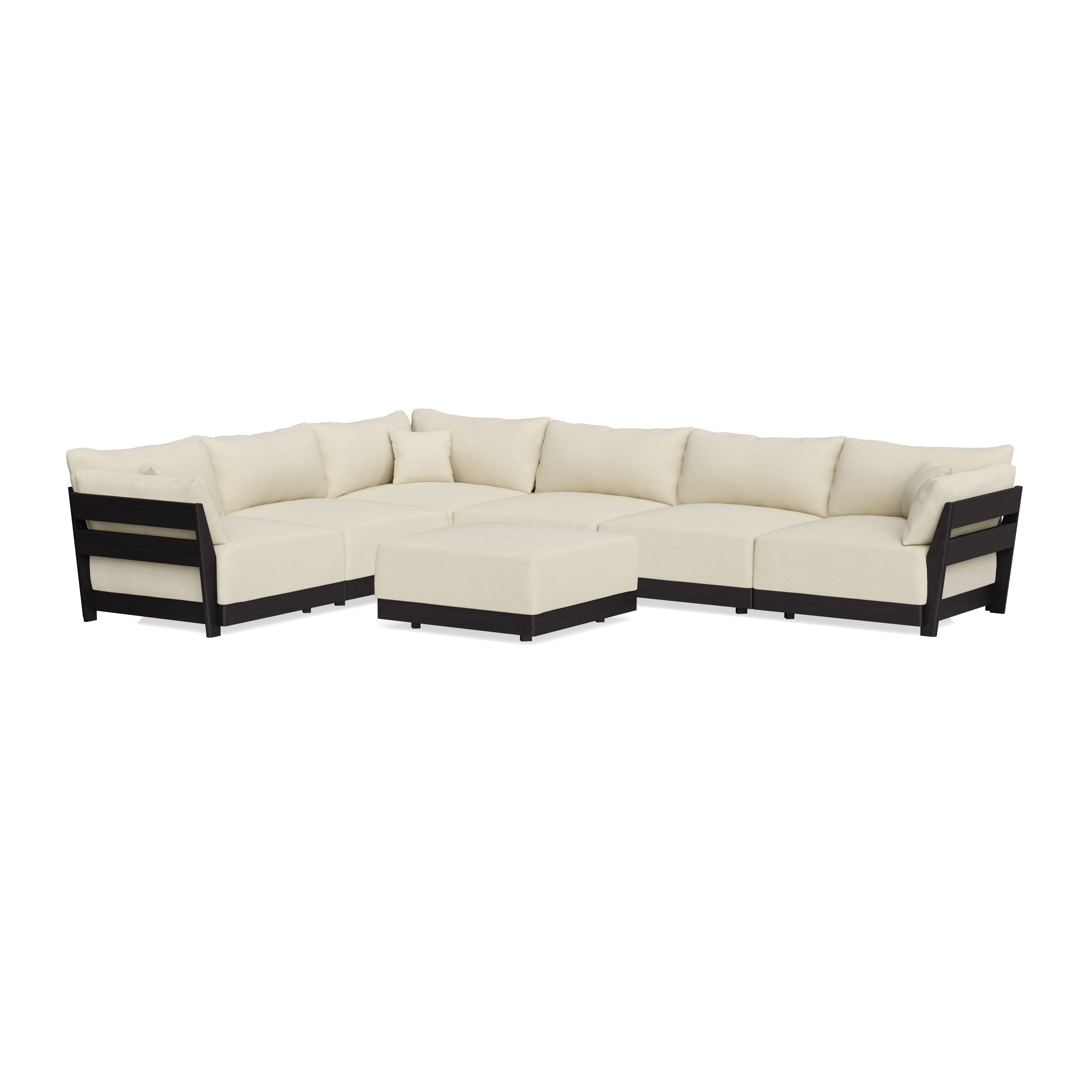 Modular Bondi Black 6-Seater Corner Sectional + Ottoman in Parchment | Memory Foam Blend