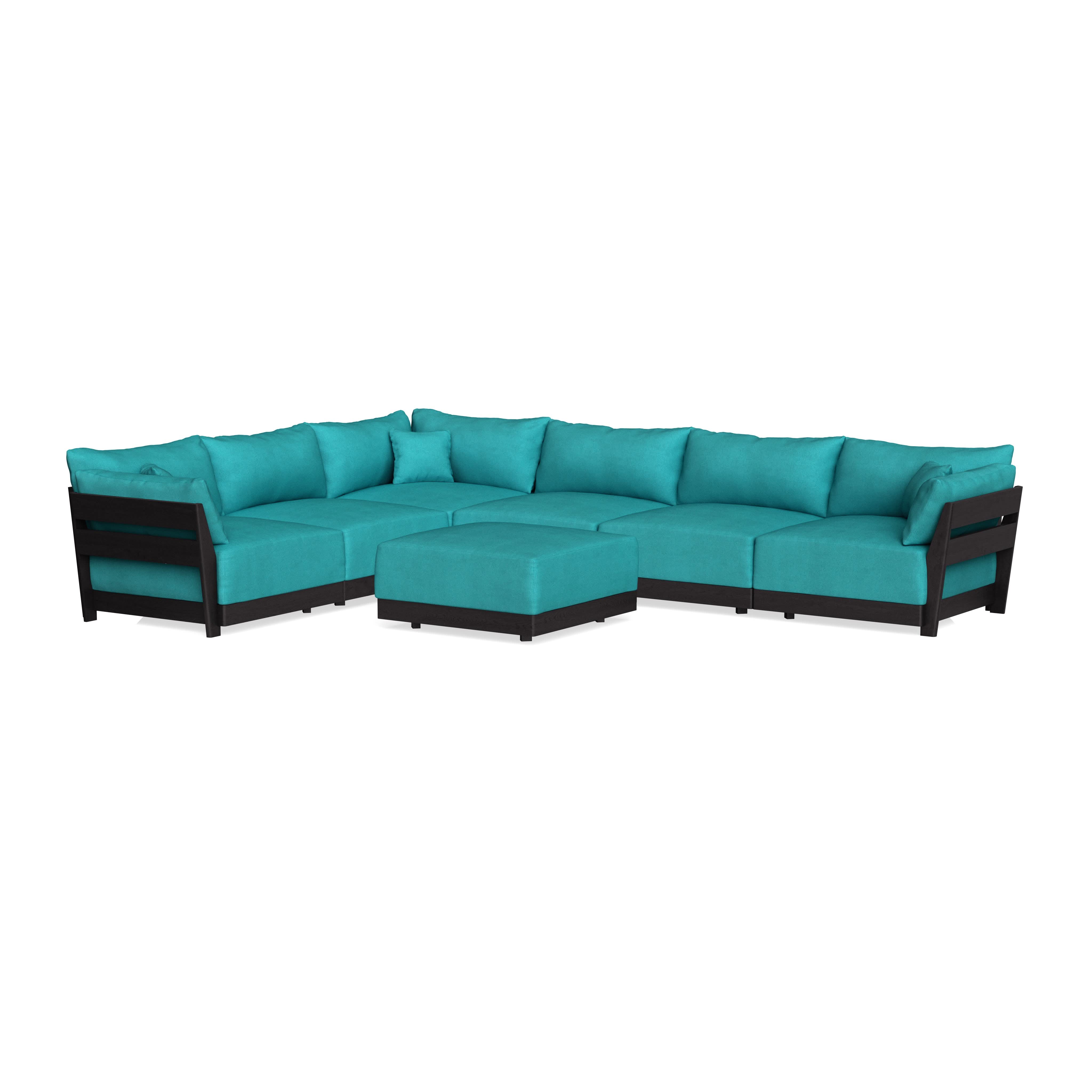 Modular Bondi Black 6-Seater Corner Sectional + Ottoman in Pool | Memory Foam Blend