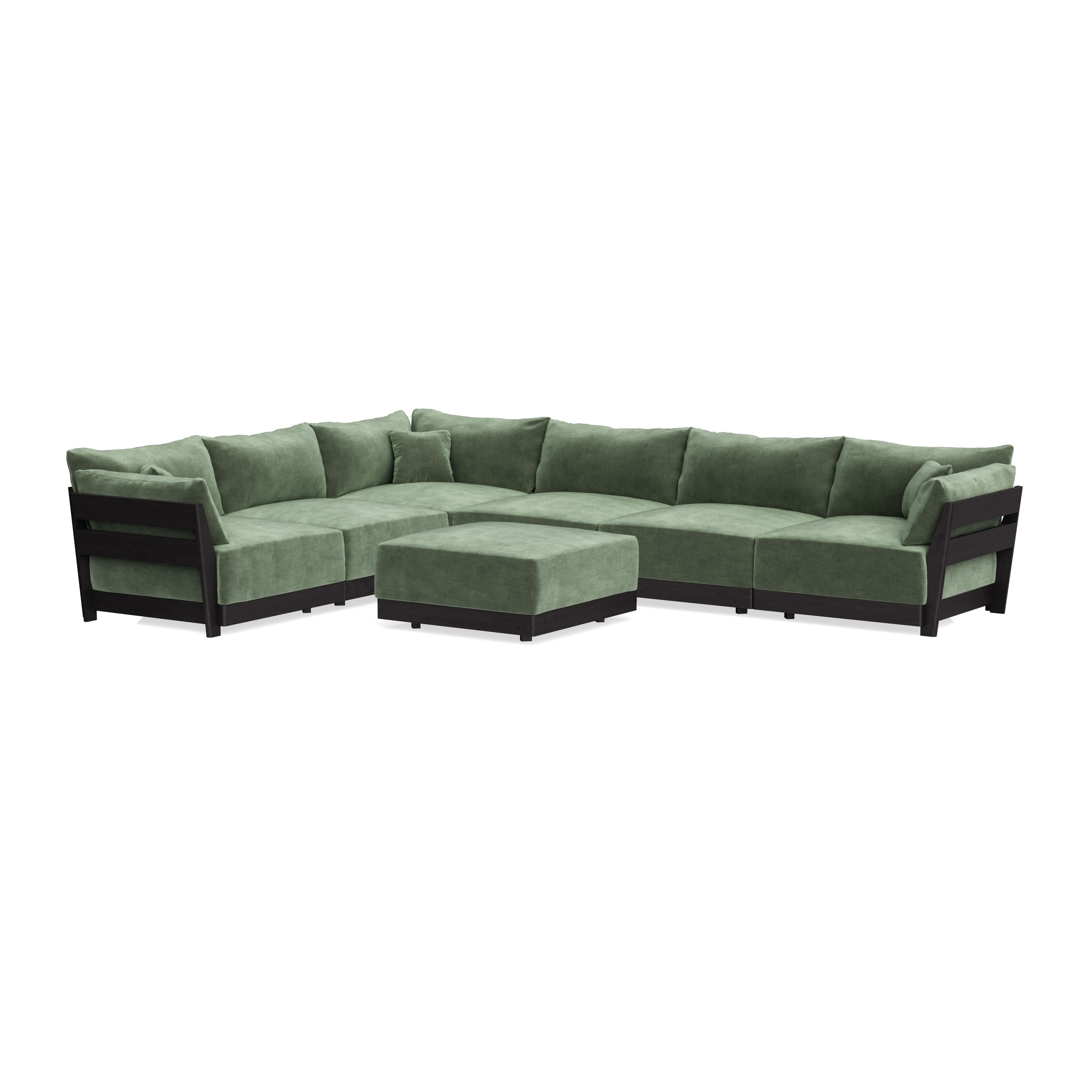 Modular Bondi Black 6-Seater Corner Sectional + Ottoman in Rosemary | Classic Blend