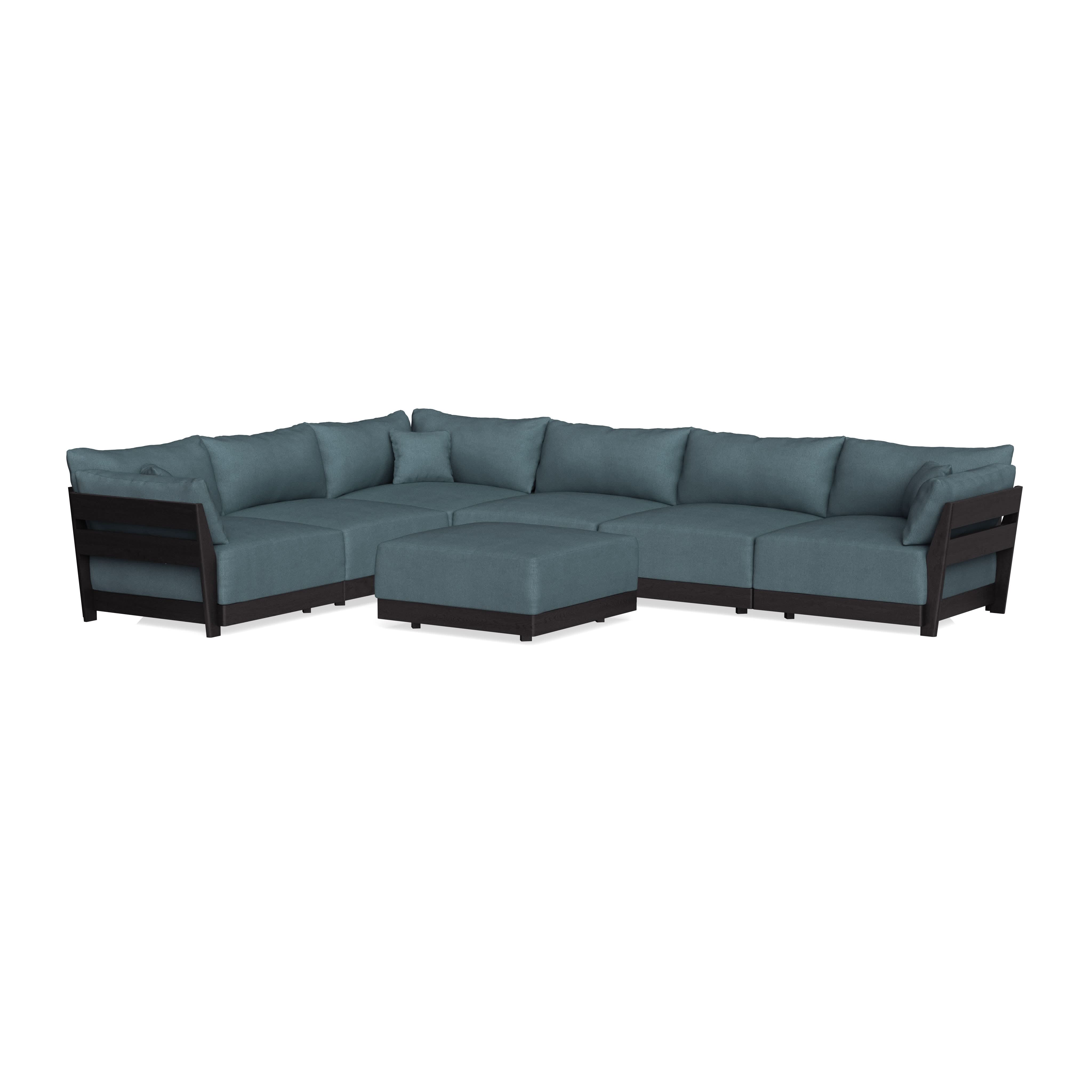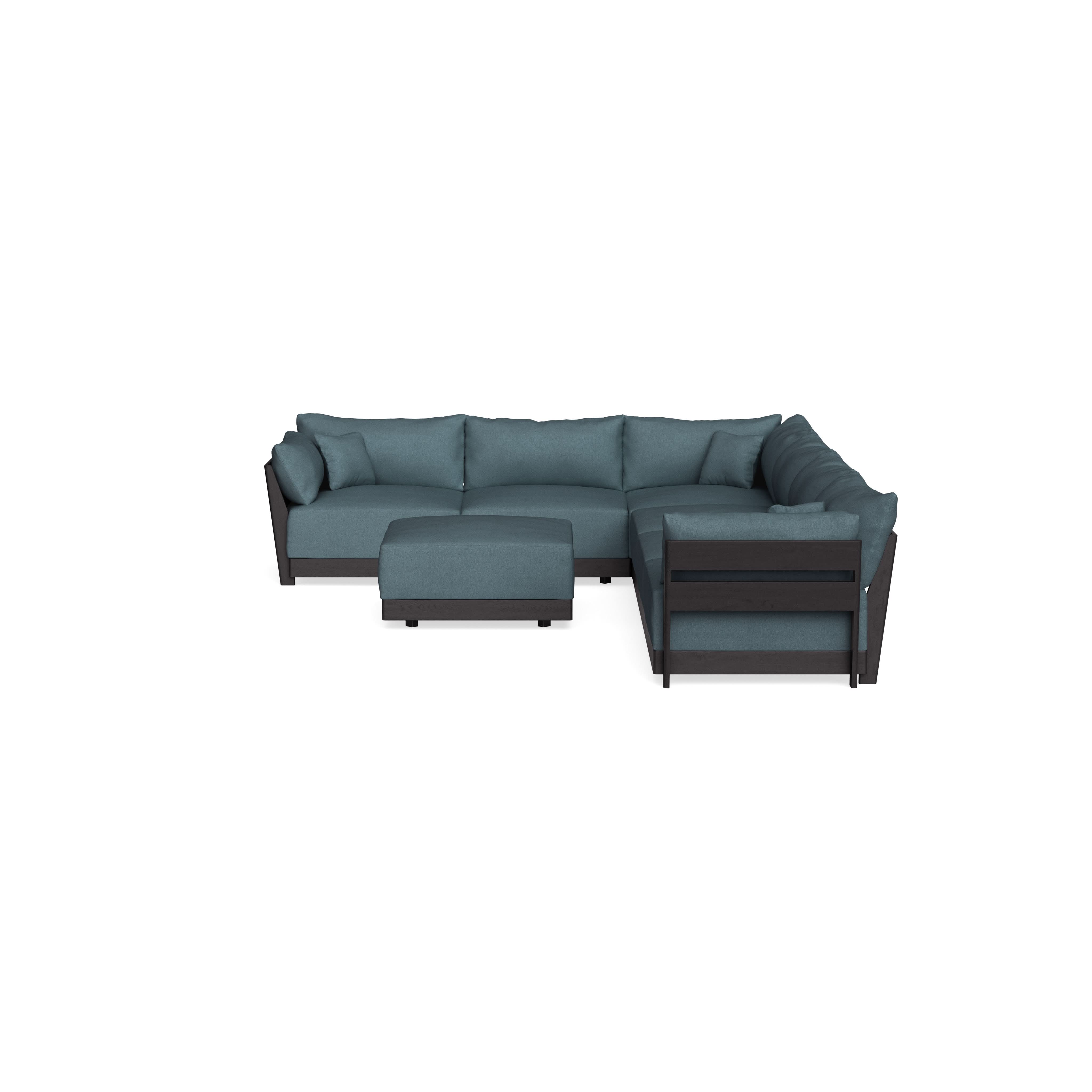 Modular Bondi Black 6-Seater Corner Sectional + Ottoman in Slate Blue | Classic Blend