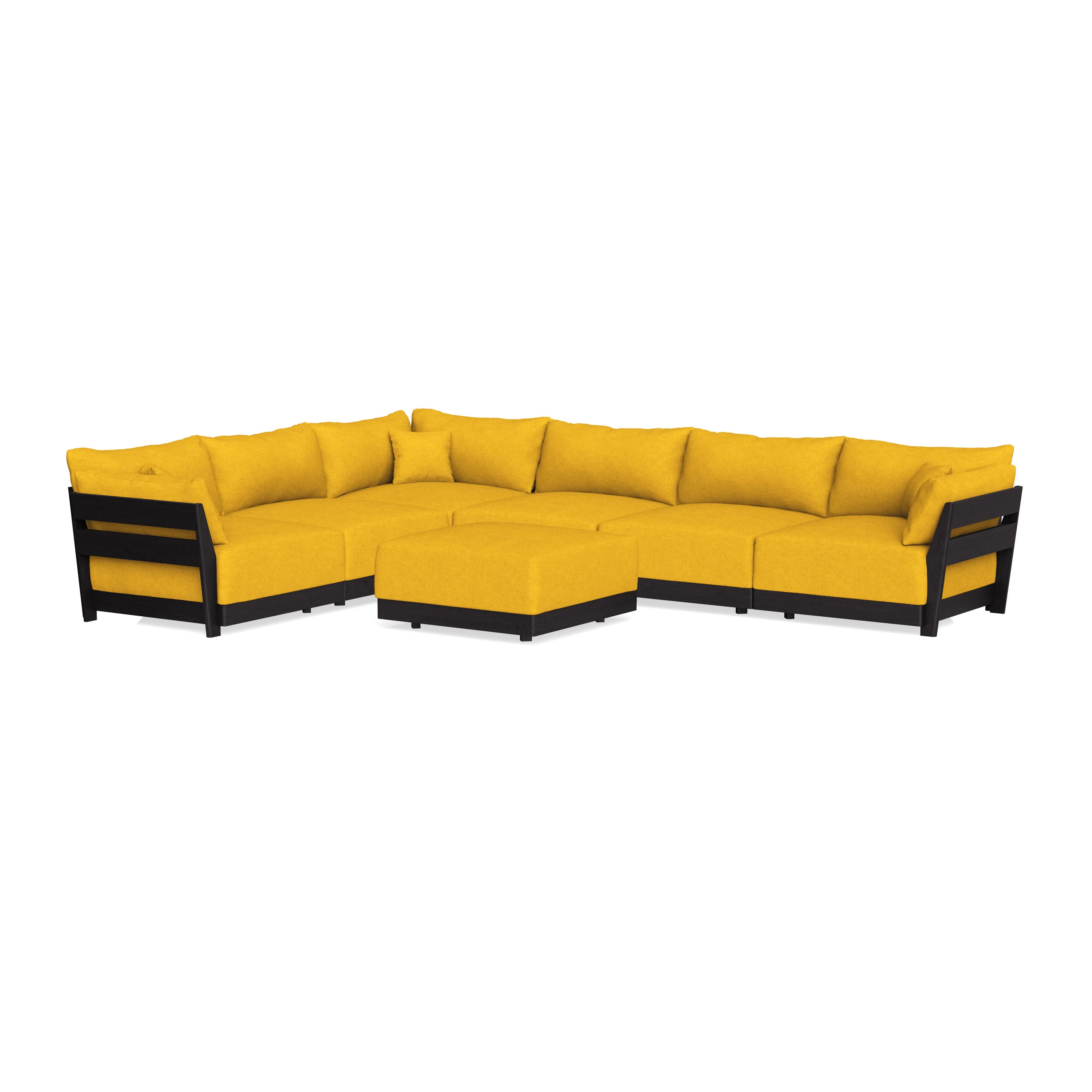 Modular Bondi Black 6-Seater Corner Sectional + Ottoman in Sunflower | Memory Foam Blend