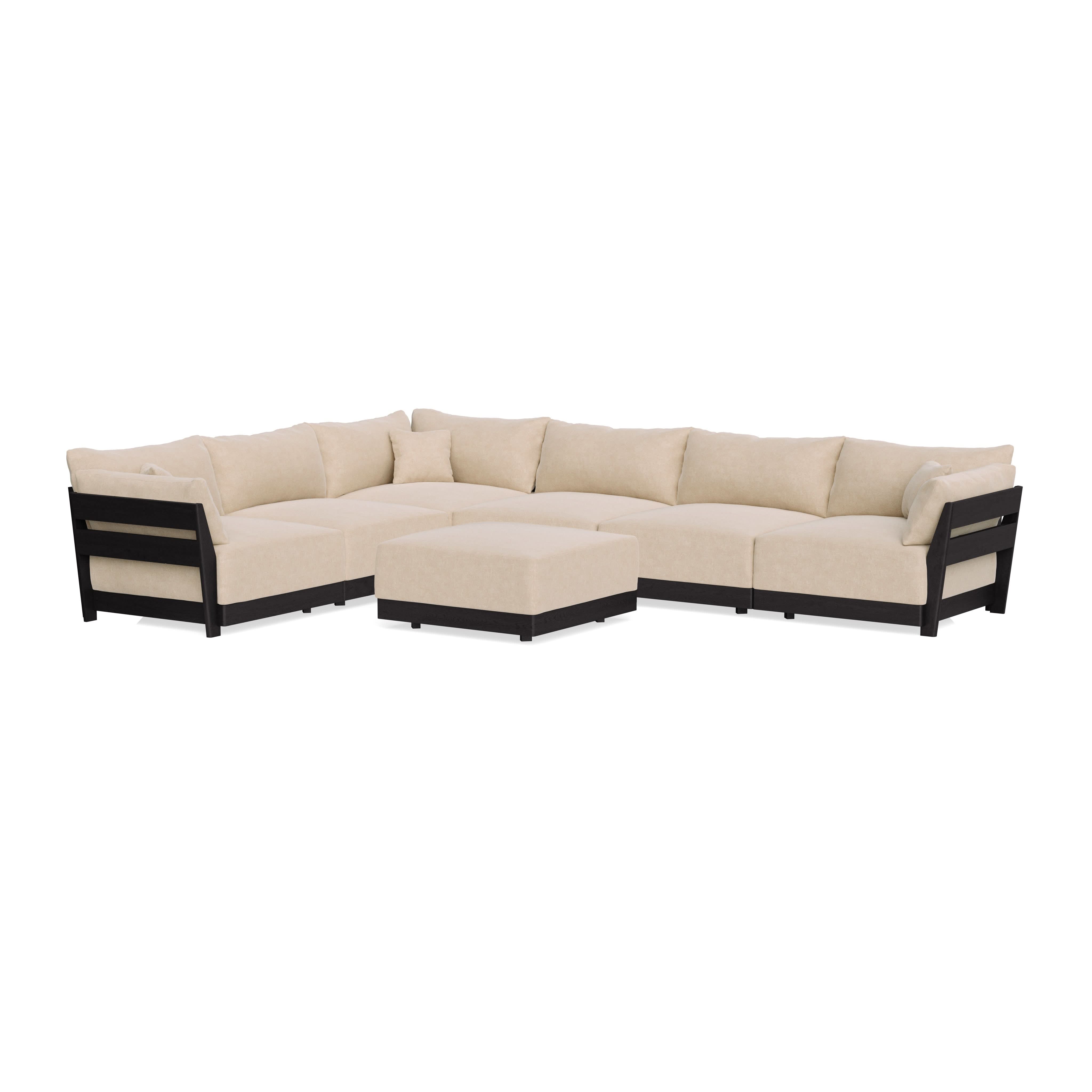 Modular Bondi Black 6-Seater Corner Sectional + Ottoman in Vanilla | Classic Blend
