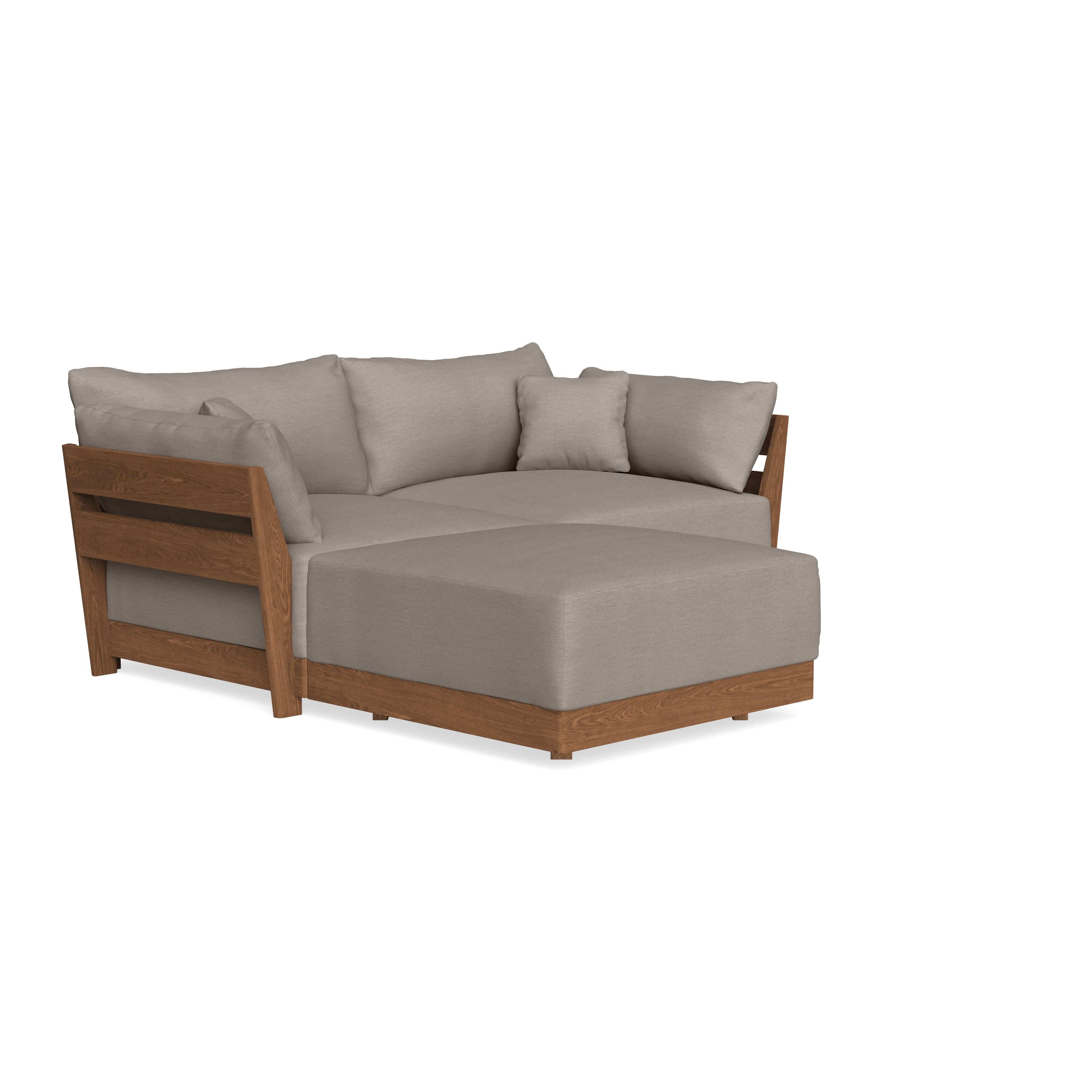 Made to move and adapt with your ever-changing lifestyle. Every patent pending seat block is alike and can be used in the middle, on the end, or as a corner piece in your sofa. Likewise, every slatted solid wood panel is identical and can be used as either an “arm” or a “back”. And the ottomans? Also adaptable! Ottomans can stand alone or serve as an extension to your sofa by connecting to any seat module at its base.