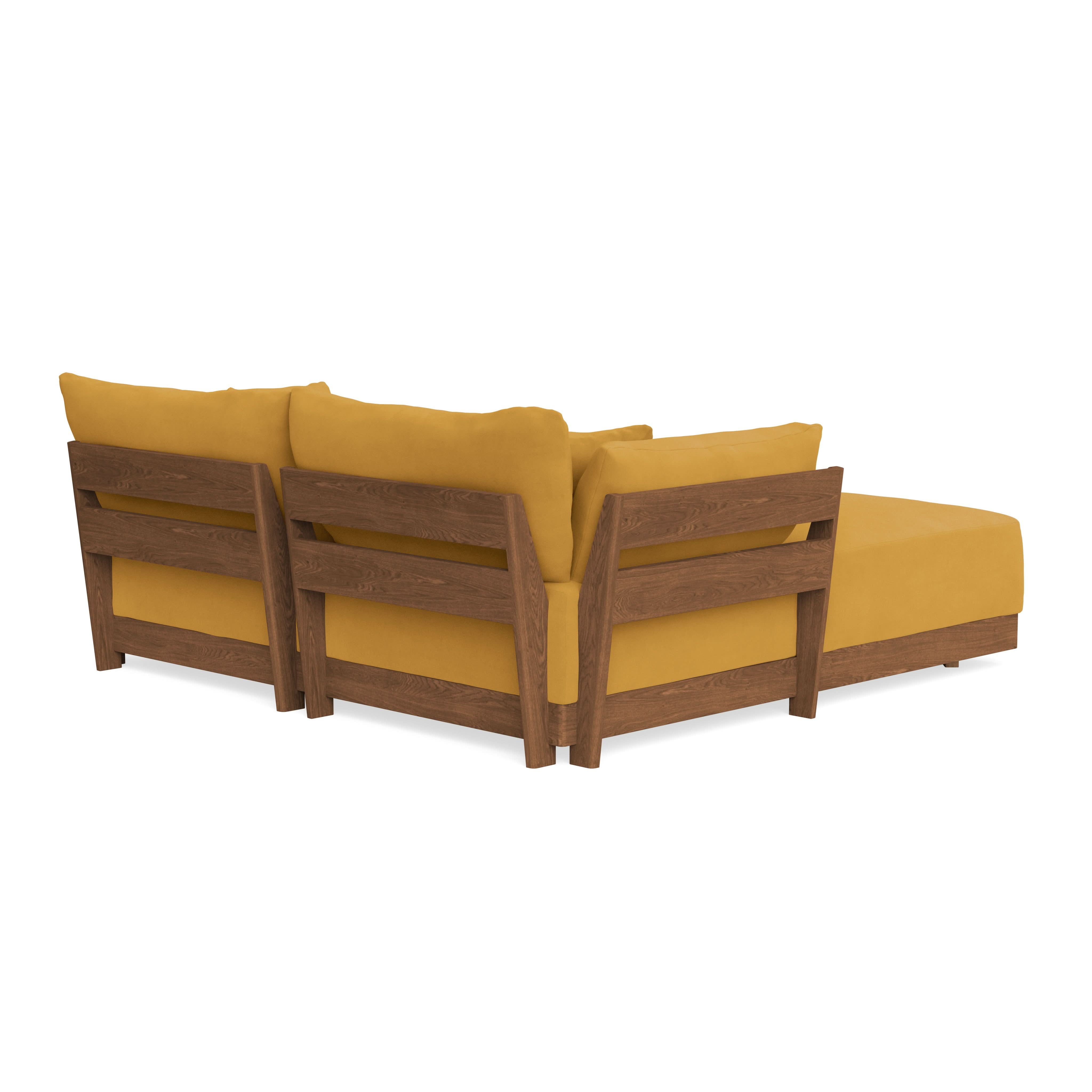Made to move and adapt with your ever-changing lifestyle. Every patent pending seat block is alike and can be used in the middle, on the end, or as a corner piece in your sofa. Likewise, every slatted solid wood panel is identical and can be used as either an “arm” or a “back”. And the ottomans? Also adaptable! Ottomans can stand alone or serve as an extension to your sofa by connecting to any seat module at its base.