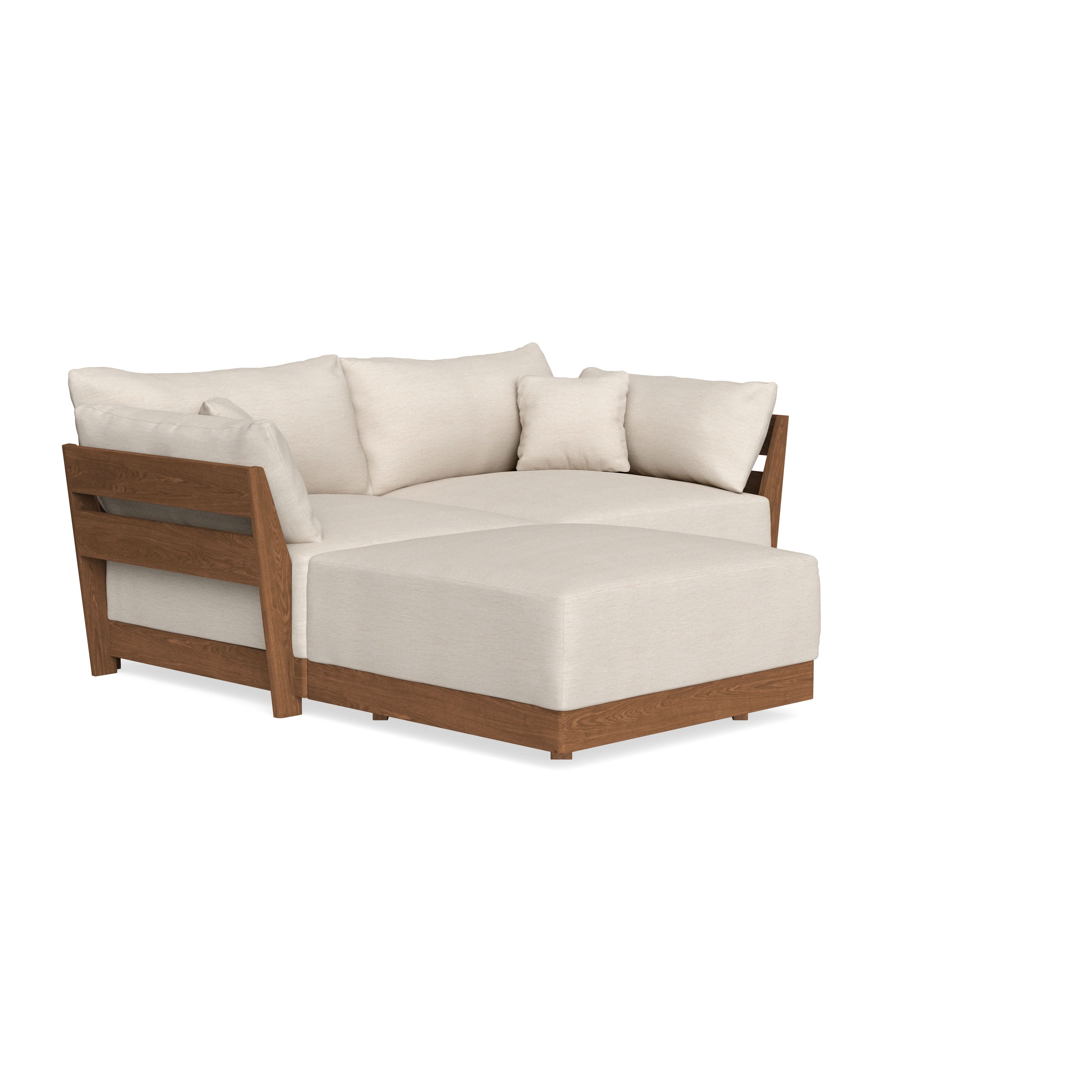 Made to move and adapt with your ever-changing lifestyle. Every patent pending seat block is alike and can be used in the middle, on the end, or as a corner piece in your sofa. Likewise, every slatted solid wood panel is identical and can be used as either an “arm” or a “back”. And the ottomans? Also adaptable! Ottomans can stand alone or serve as an extension to your sofa by connecting to any seat module at its base.