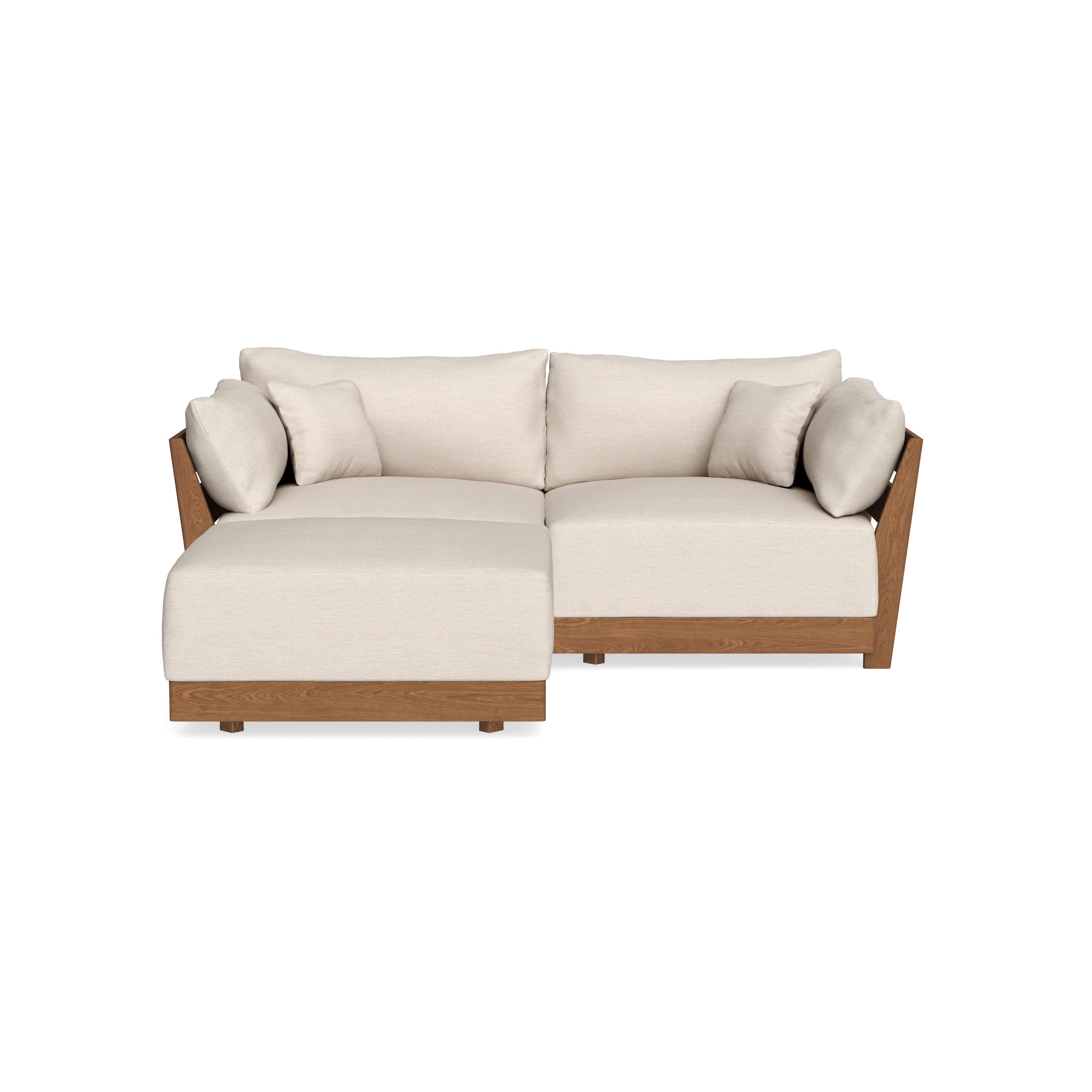 Made to move and adapt with your ever-changing lifestyle. Every patent pending seat block is alike and can be used in the middle, on the end, or as a corner piece in your sofa. Likewise, every slatted solid wood panel is identical and can be used as either an “arm” or a “back”. And the ottomans? Also adaptable! Ottomans can stand alone or serve as an extension to your sofa by connecting to any seat module at its base.