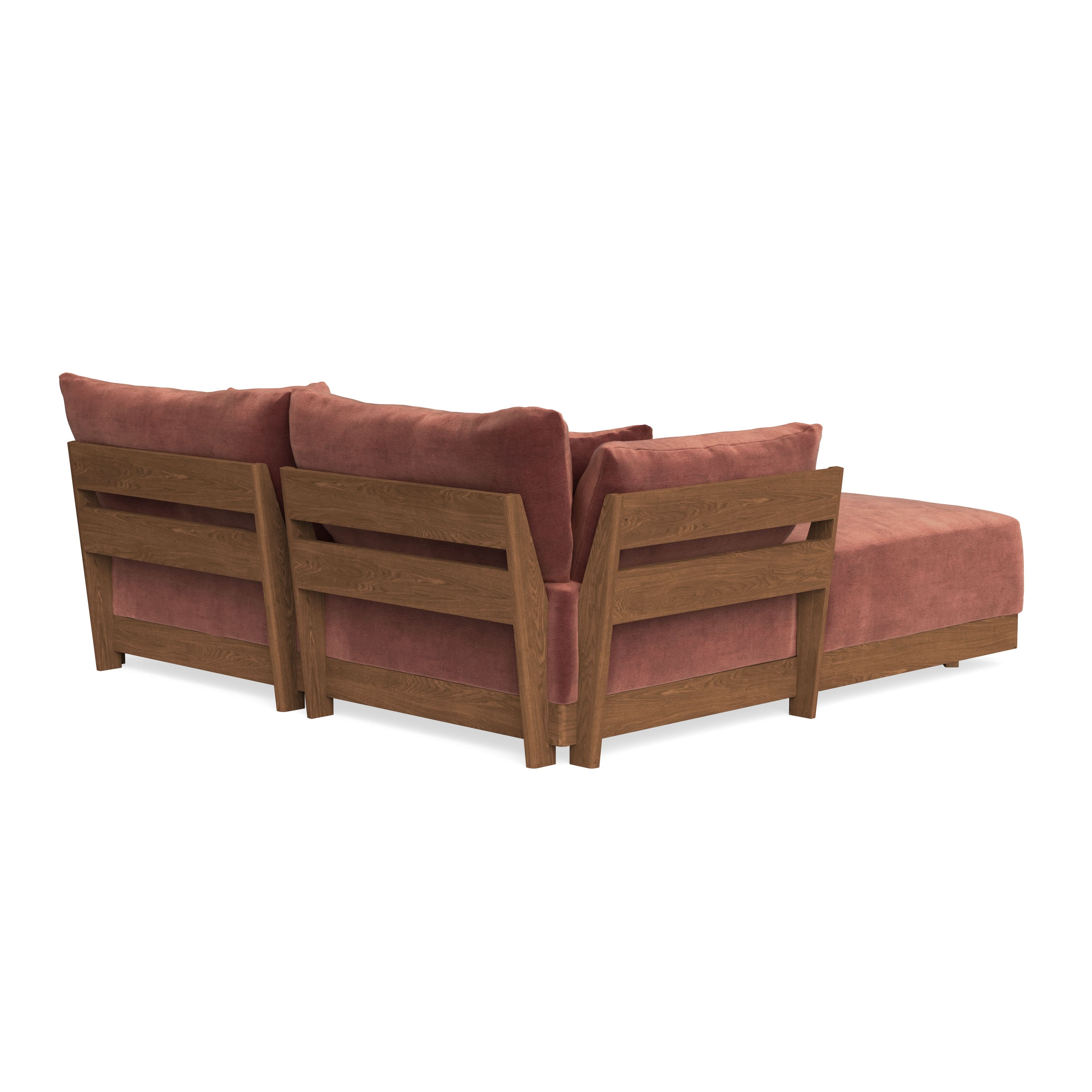 Made to move and adapt with your ever-changing lifestyle. Every patent pending seat block is alike and can be used in the middle, on the end, or as a corner piece in your sofa. Likewise, every slatted solid wood panel is identical and can be used as either an “arm” or a “back”. And the ottomans? Also adaptable! Ottomans can stand alone or serve as an extension to your sofa by connecting to any seat module at its base.
