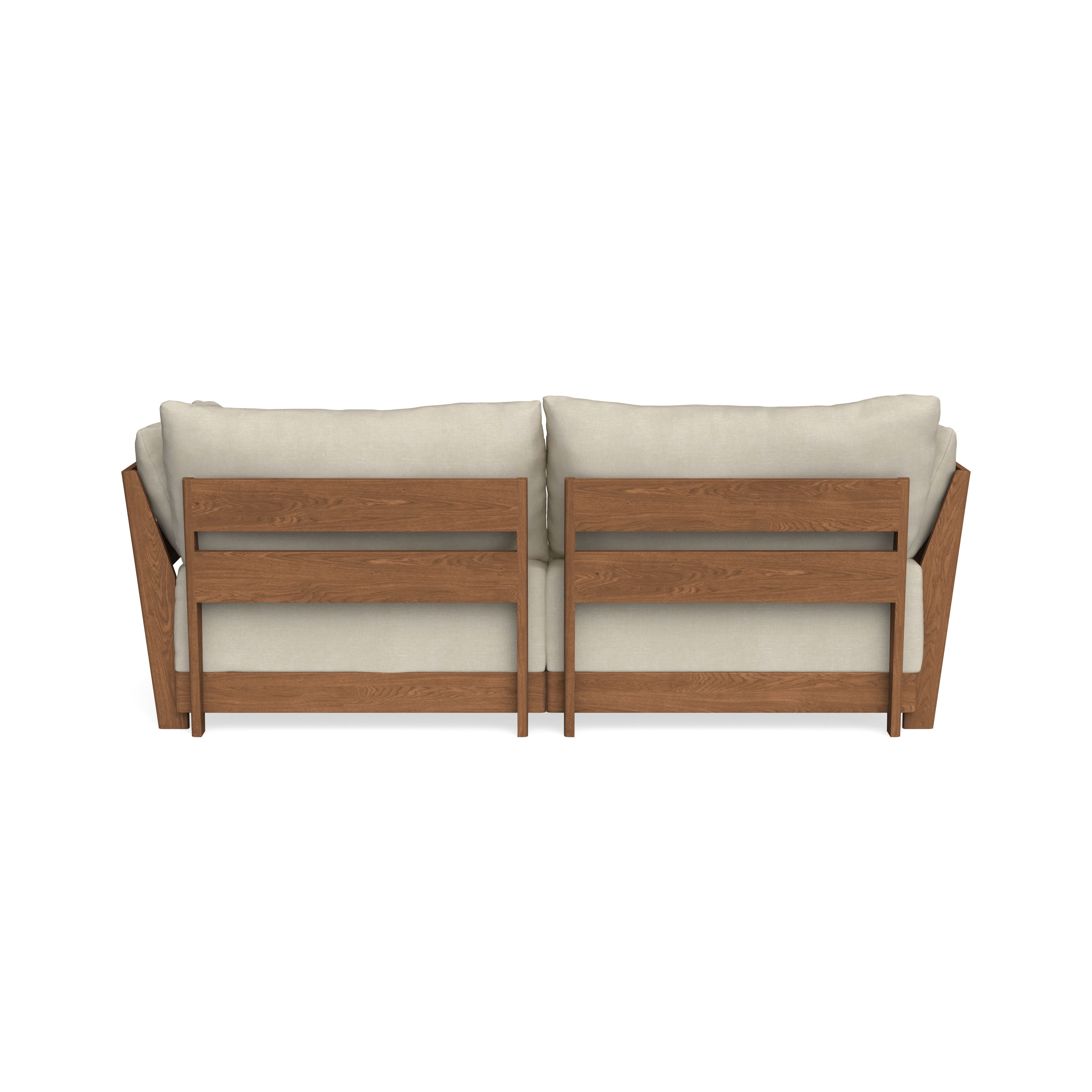 Made to move and adapt with your ever-changing lifestyle. Every patent pending seat block is alike and can be used in the middle, on the end, or as a corner piece in your sofa. Likewise, every slatted solid wood panel is identical and can be used as either an “arm” or a “back”. And the ottomans? Also adaptable! Ottomans can stand alone or serve as an extension to your sofa by connecting to any seat module at its base.