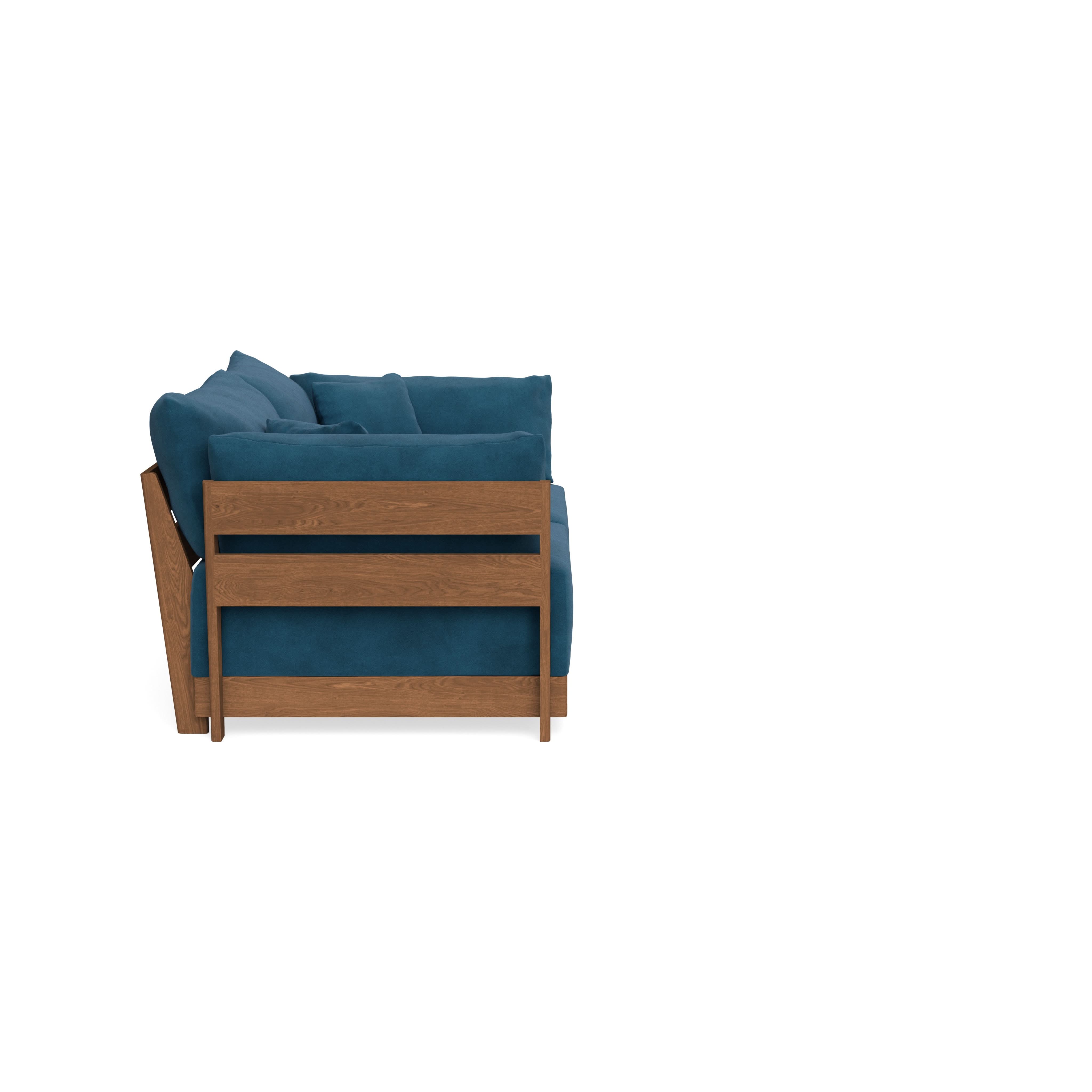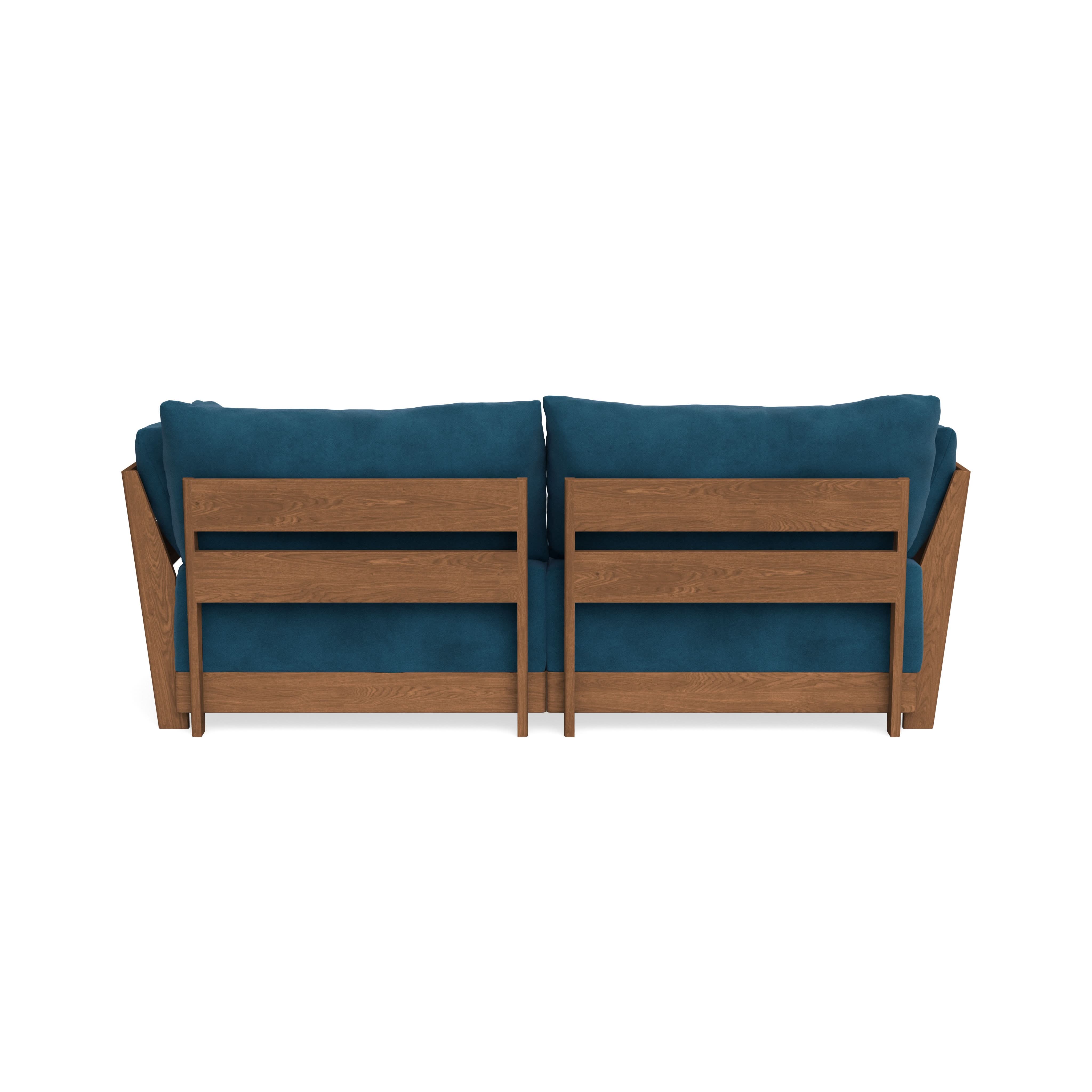 Made to move and adapt with your ever-changing lifestyle. Every patent pending seat block is alike and can be used in the middle, on the end, or as a corner piece in your sofa. Likewise, every slatted solid wood panel is identical and can be used as either an “arm” or a “back”. And the ottomans? Also adaptable! Ottomans can stand alone or serve as an extension to your sofa by connecting to any seat module at its base.