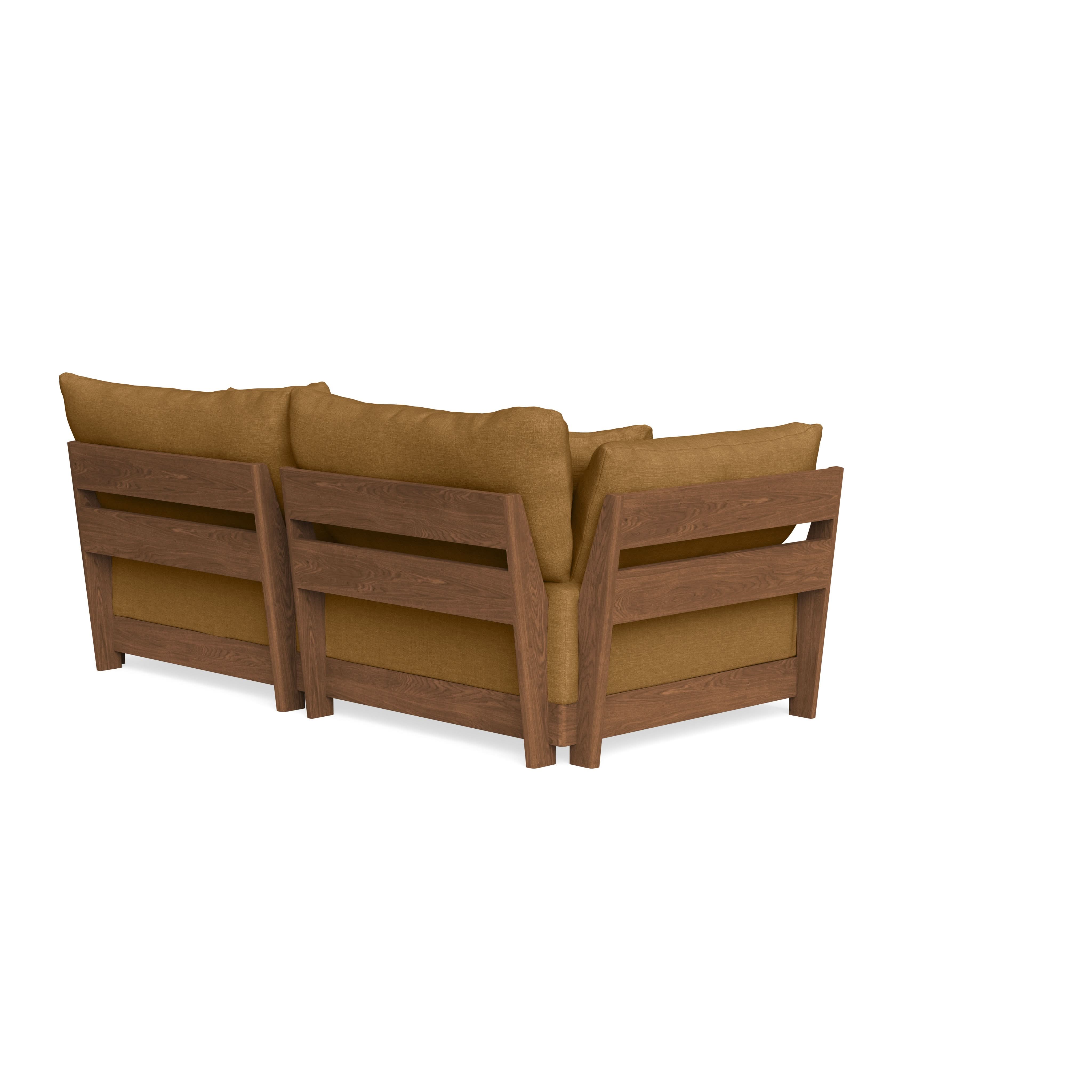 Every seat block is alike and can be used in the middle, on the end, or as a corner piece in your sofa. Each solid wood arm/back panel is identical and can be attached to any three sides of a seat block. Ottomans are adaptable too, as they can stand alone or serve as an extension to your sofa by being attached to any seat block at its base. Note that arm/back panels cannot be attached to an ottoman base.