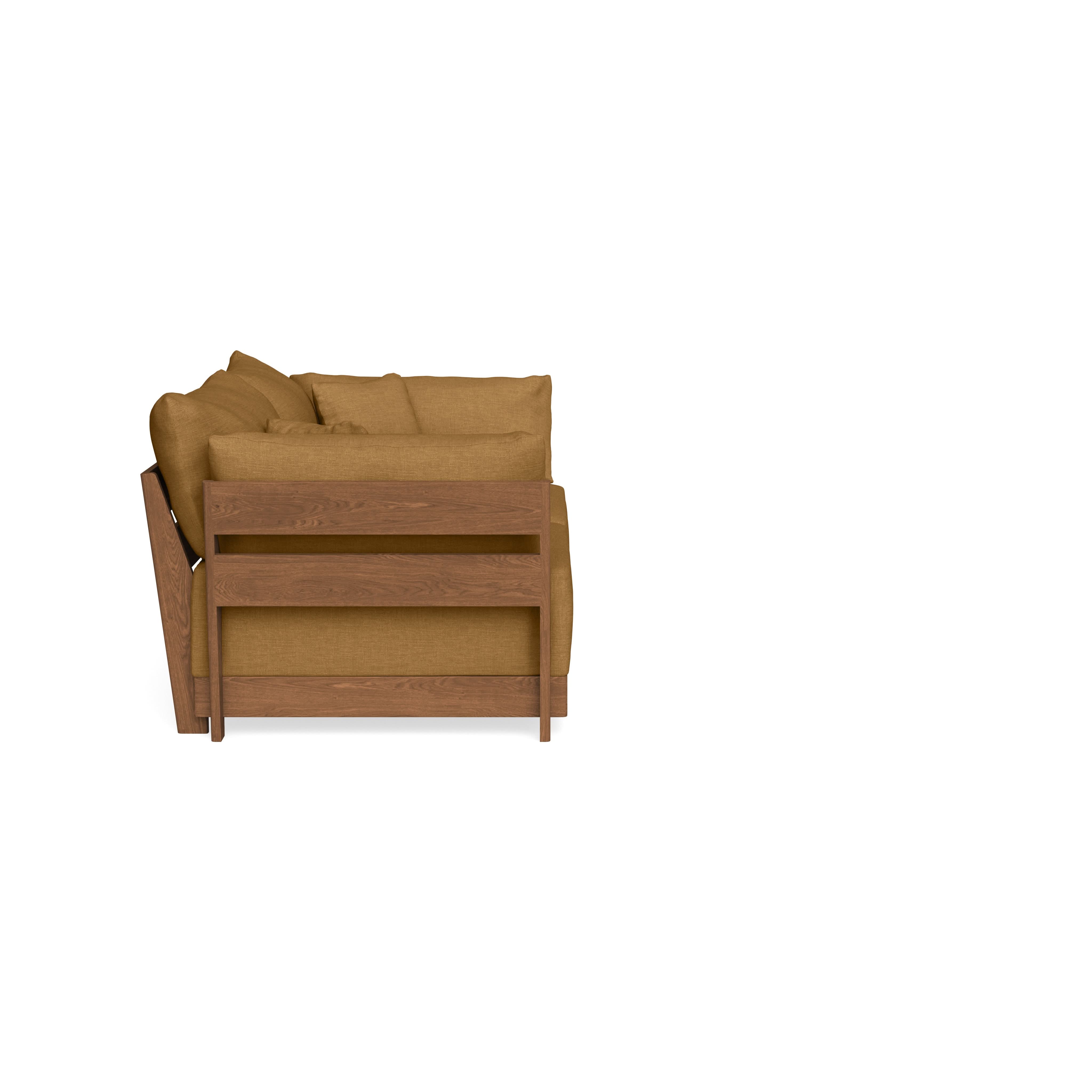 Made to move and adapt with your ever-changing lifestyle. Every patent pending seat block is alike and can be used in the middle, on the end, or as a corner piece in your sofa. Likewise, every slatted solid wood panel is identical and can be used as either an “arm” or a “back”. And the ottomans? Also adaptable! Ottomans can stand alone or serve as an extension to your sofa by connecting to any seat module at its base.
