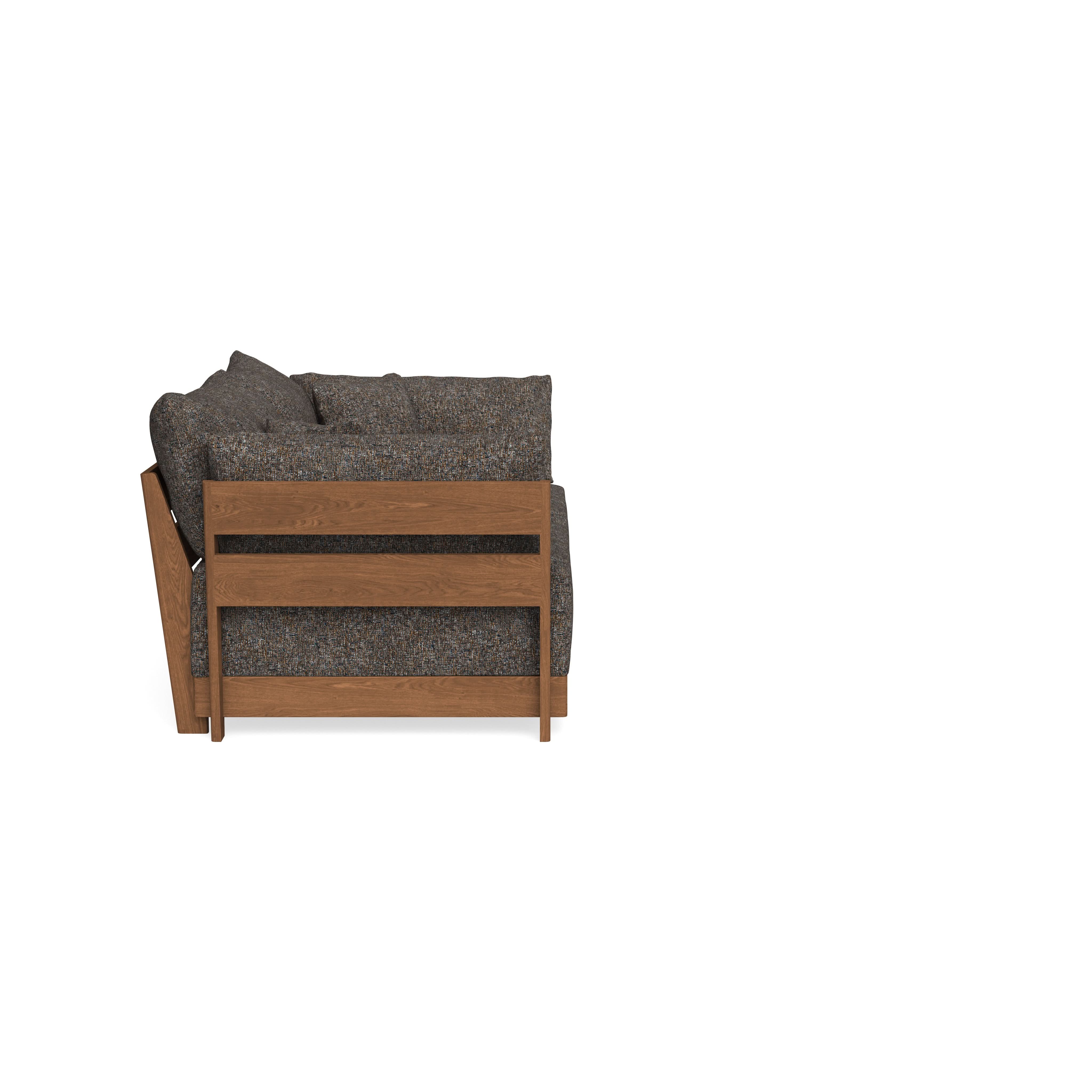 Made to move and adapt with your ever-changing lifestyle. Every patent pending seat block is alike and can be used in the middle, on the end, or as a corner piece in your sofa. Likewise, every slatted solid wood panel is identical and can be used as either an “arm” or a “back”. And the ottomans? Also adaptable! Ottomans can stand alone or serve as an extension to your sofa by connecting to any seat module at its base.