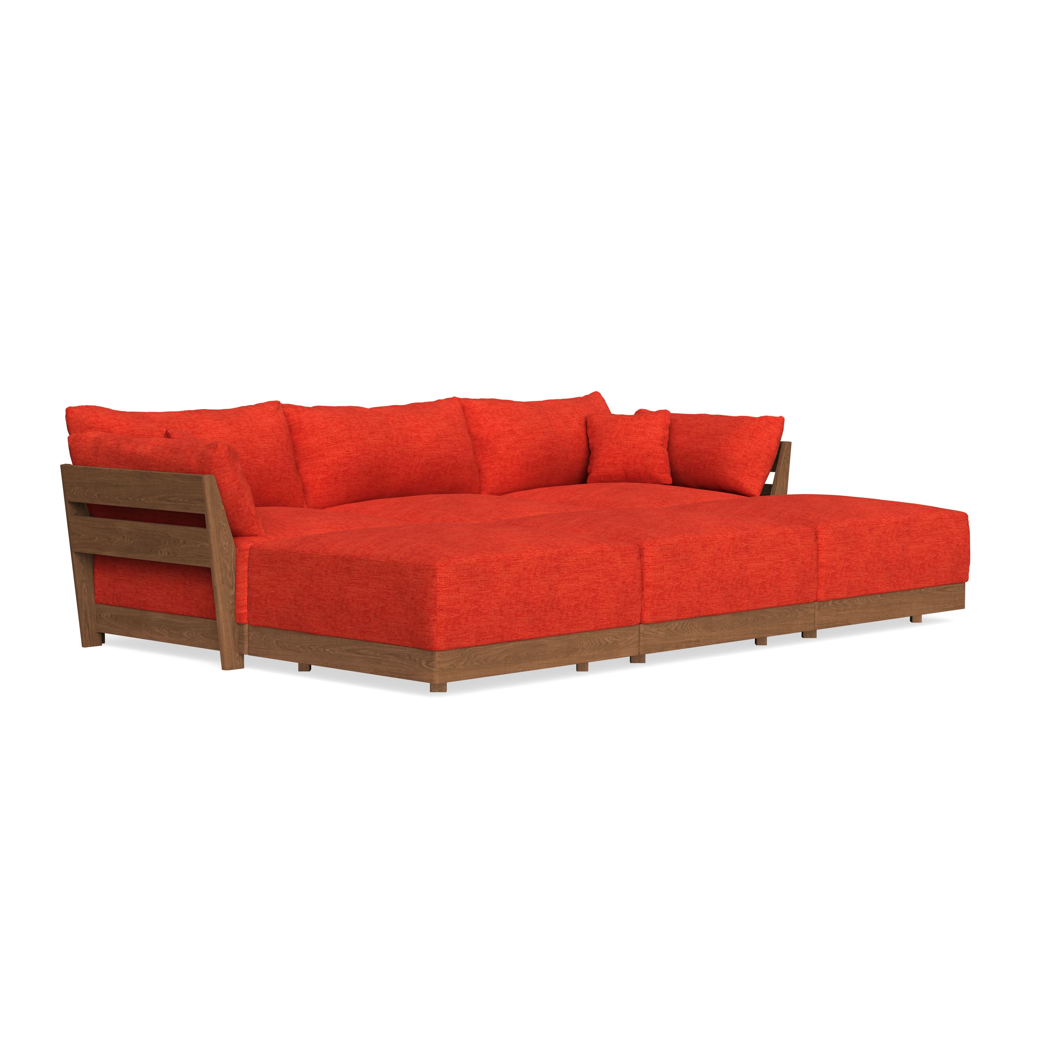 Modular Bondi Espresso 3-Seater Daybed Sofa Sectional in Poppy Orange | Memory Foam Blend