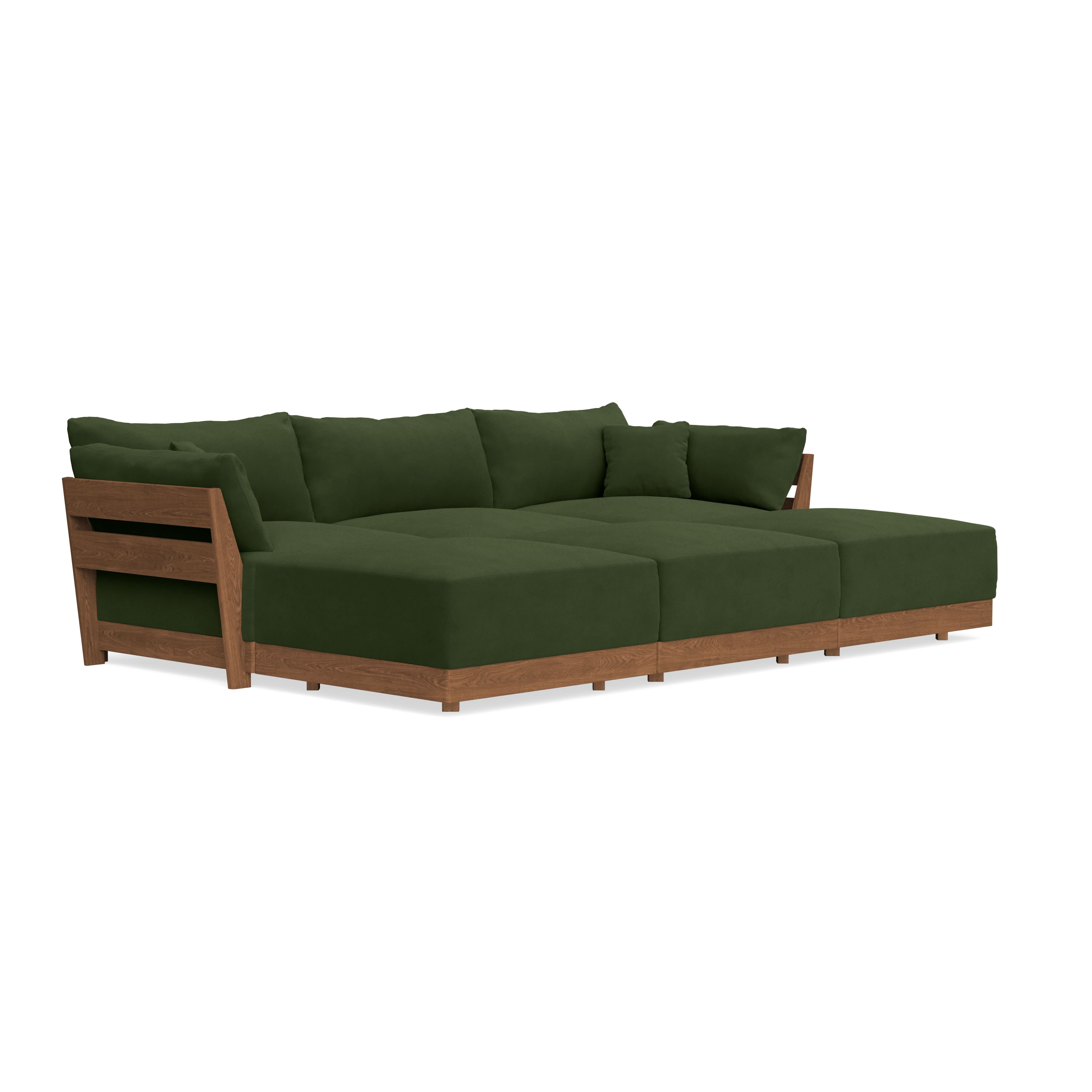 Modular Bondi Espresso 3-Seater Daybed Sofa Sectional in Tuscan Green | Memory Foam Blend