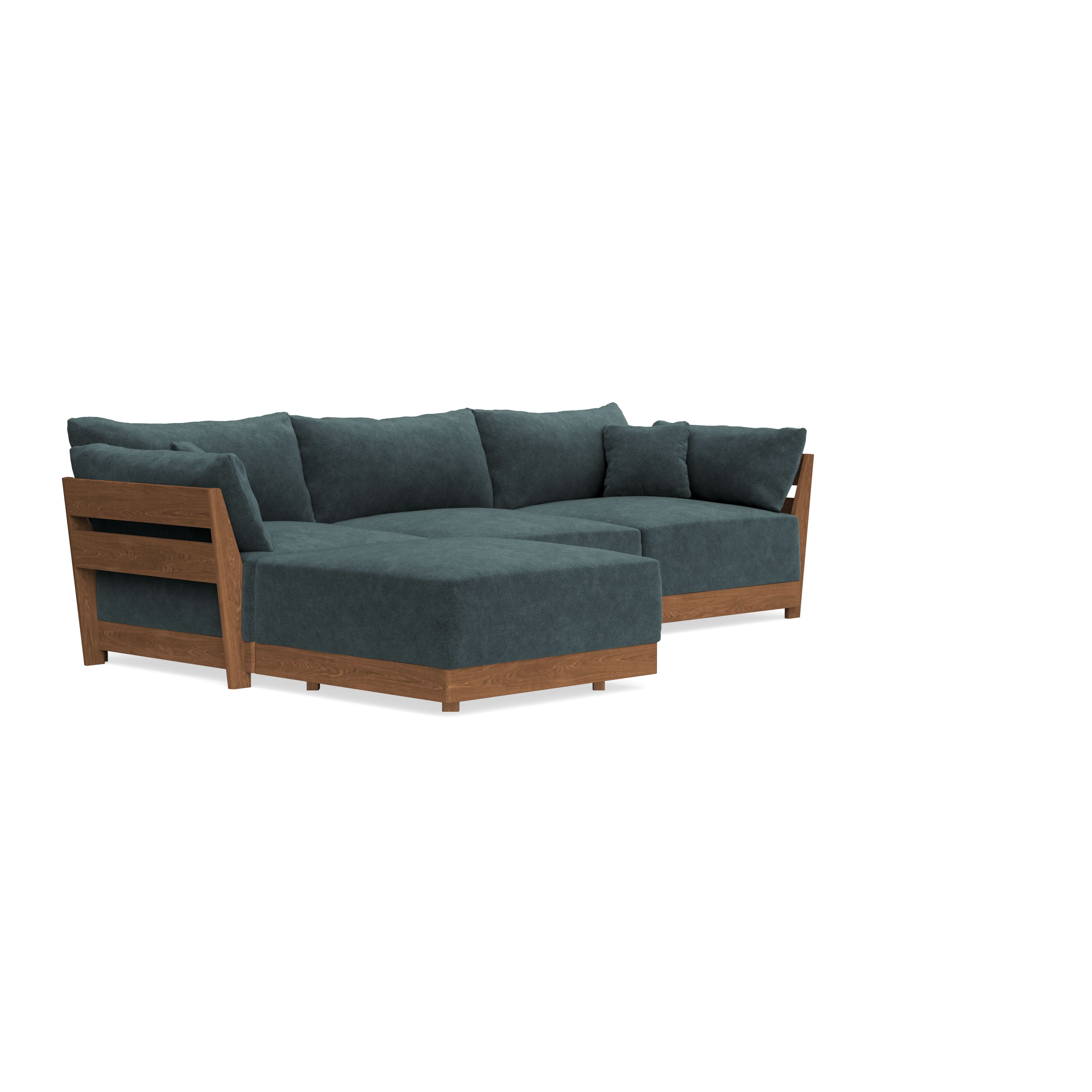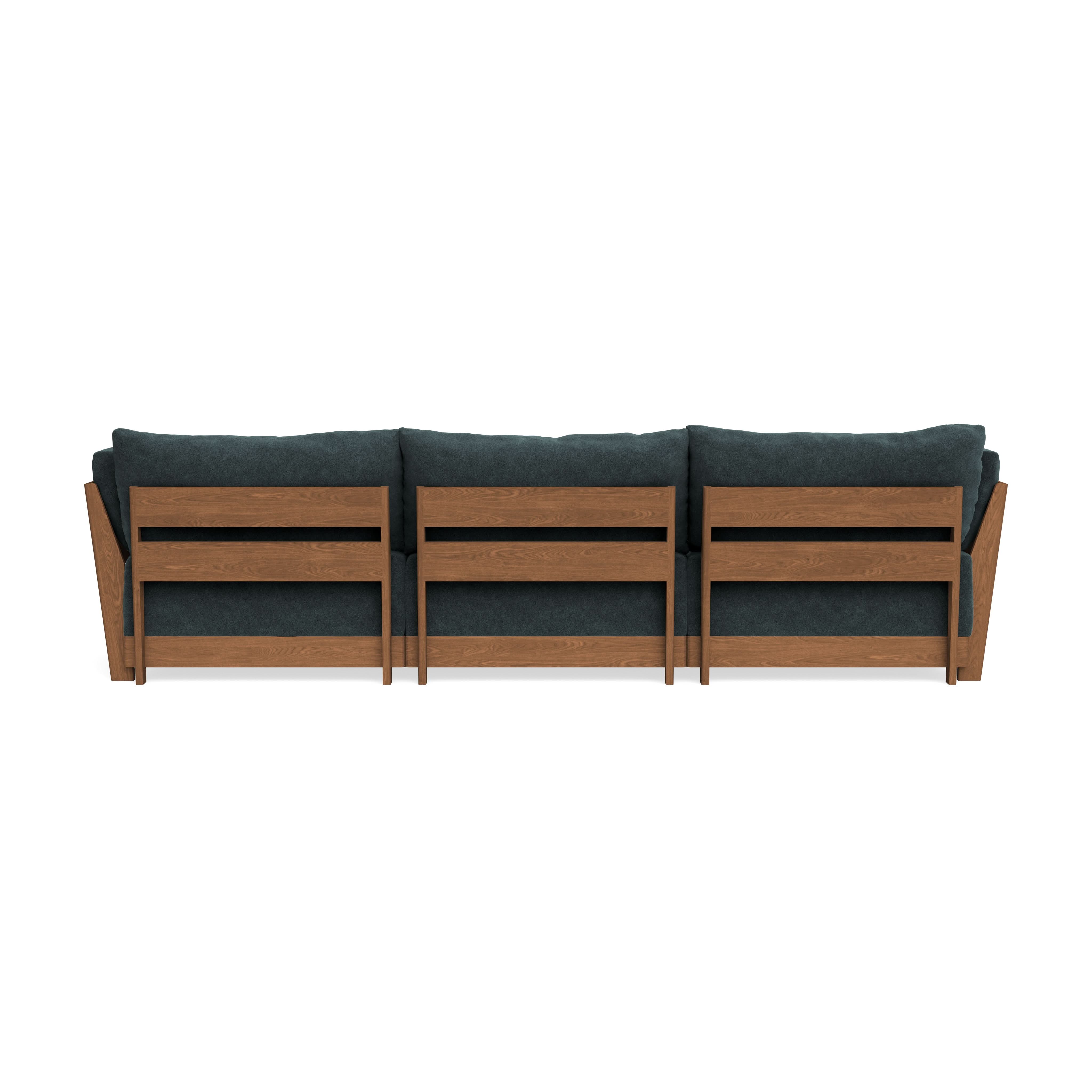 Made to move and adapt with your ever-changing lifestyle. Every patent pending seat block is alike and can be used in the middle, on the end, or as a corner piece in your sofa. Likewise, every slatted solid wood panel is identical and can be used as either an “arm” or a “back”. And the ottomans? Also adaptable! Ottomans can stand alone or serve as an extension to your sofa by connecting to any seat module at its base.