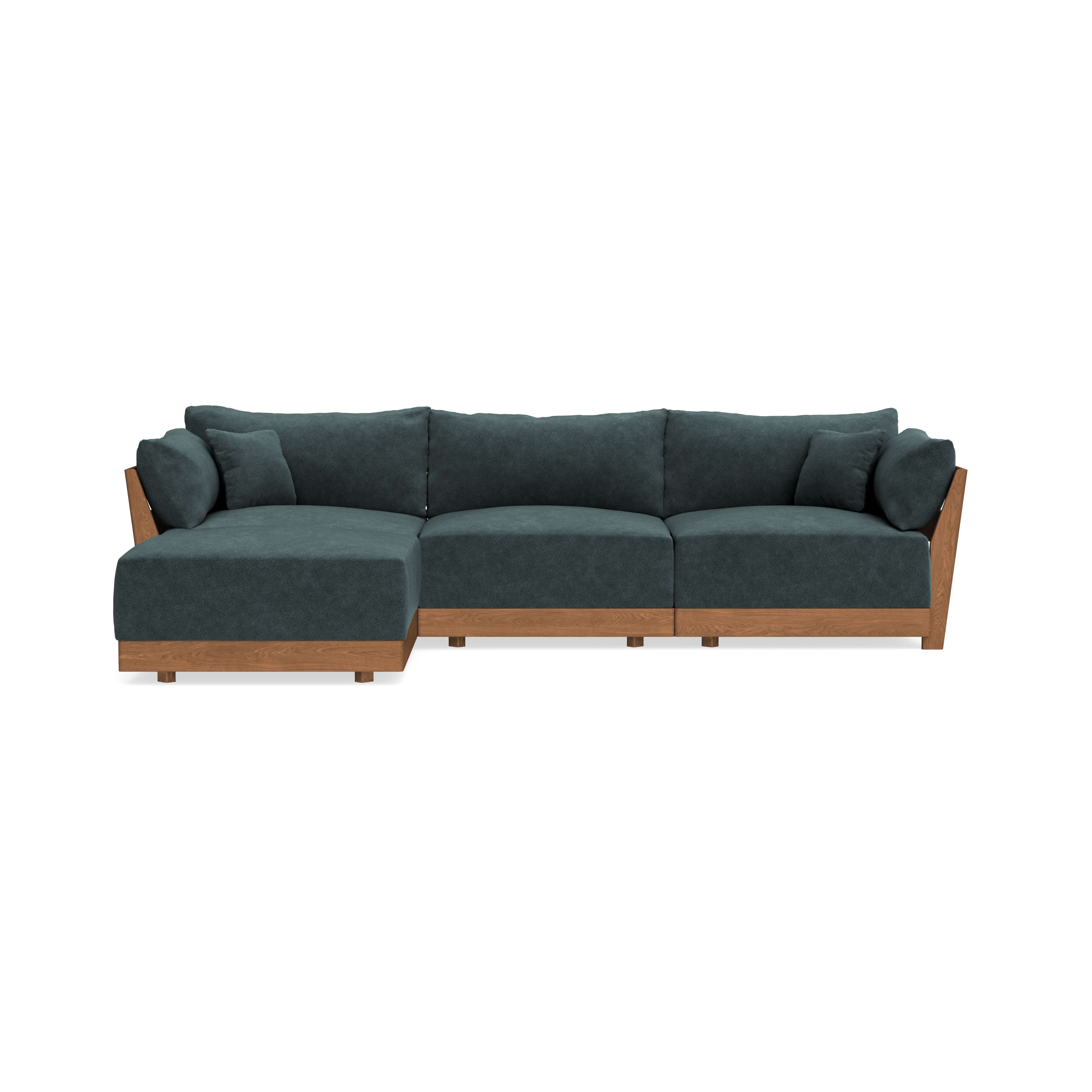 Every seat block is alike and can be used in the middle, on the end, or as a corner piece in your sofa. Each solid wood arm/back panel is identical and can be attached to any three sides of a seat block. Ottomans are adaptable too, as they can stand alone or serve as an extension to your sofa by being attached to any seat block at its base. Note that arm/back panels cannot be attached to an ottoman base.