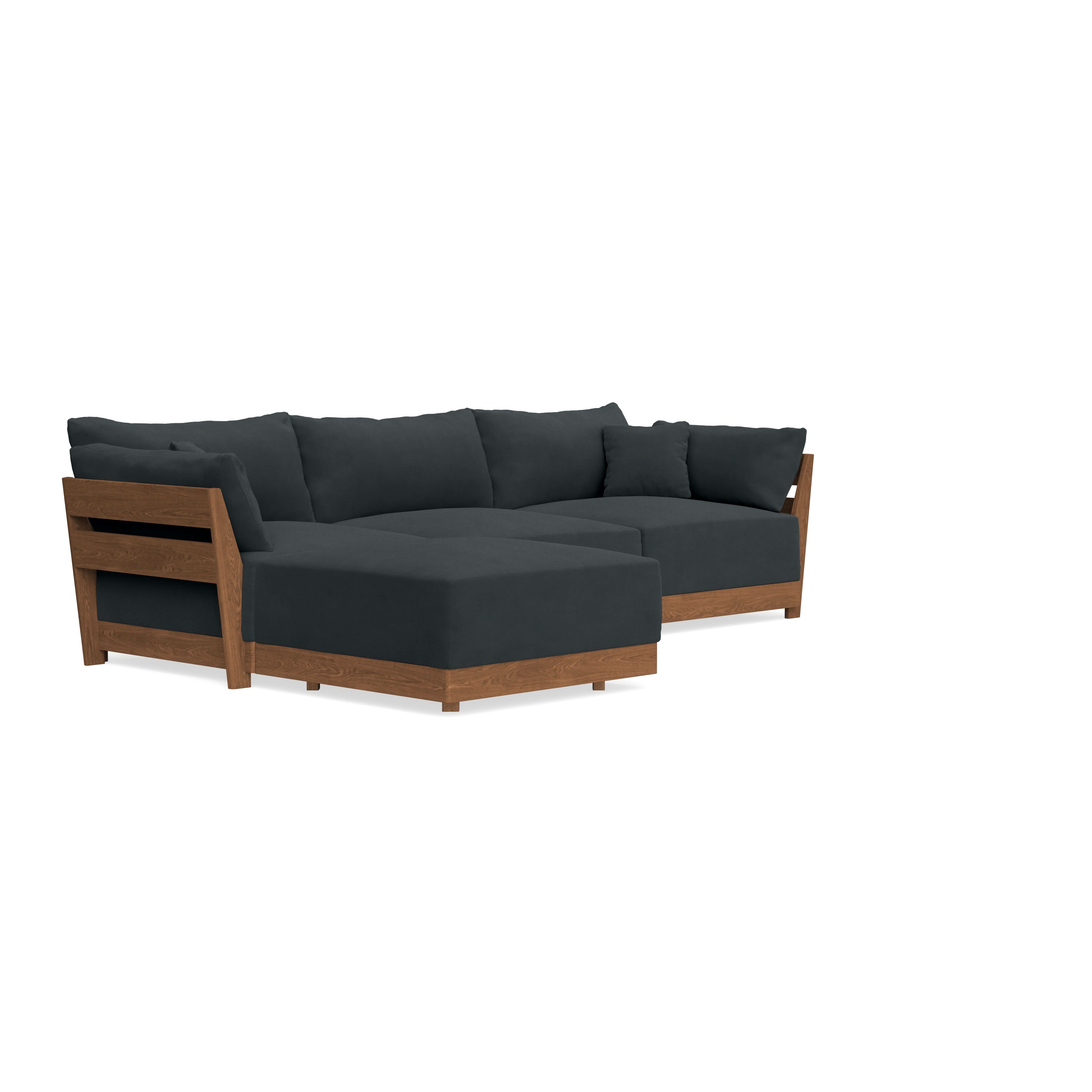 Made to move and adapt with your ever-changing lifestyle. Every patent pending seat block is alike and can be used in the middle, on the end, or as a corner piece in your sofa. Likewise, every slatted solid wood panel is identical and can be used as either an “arm” or a “back”. And the ottomans? Also adaptable! Ottomans can stand alone or serve as an extension to your sofa by connecting to any seat module at its base.
