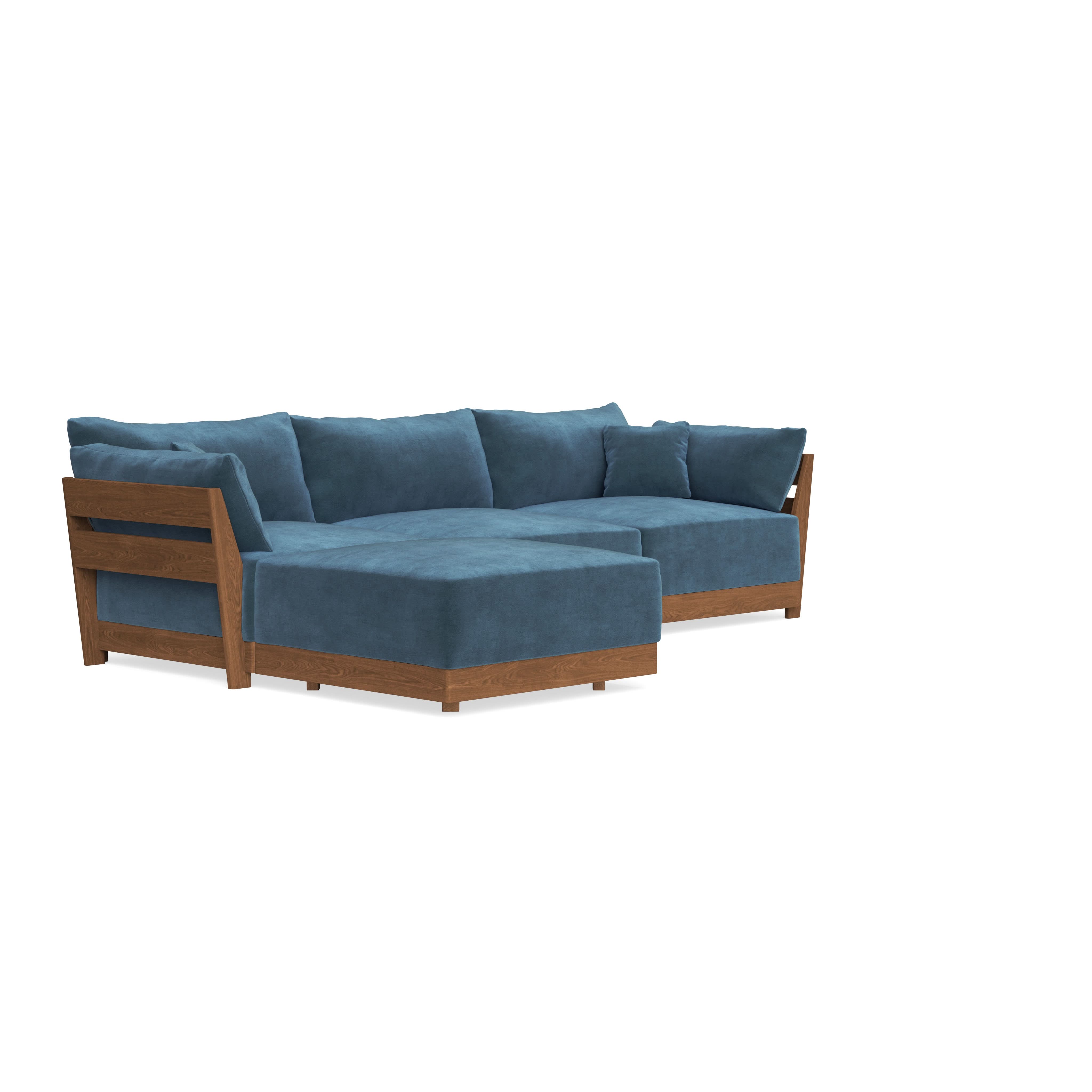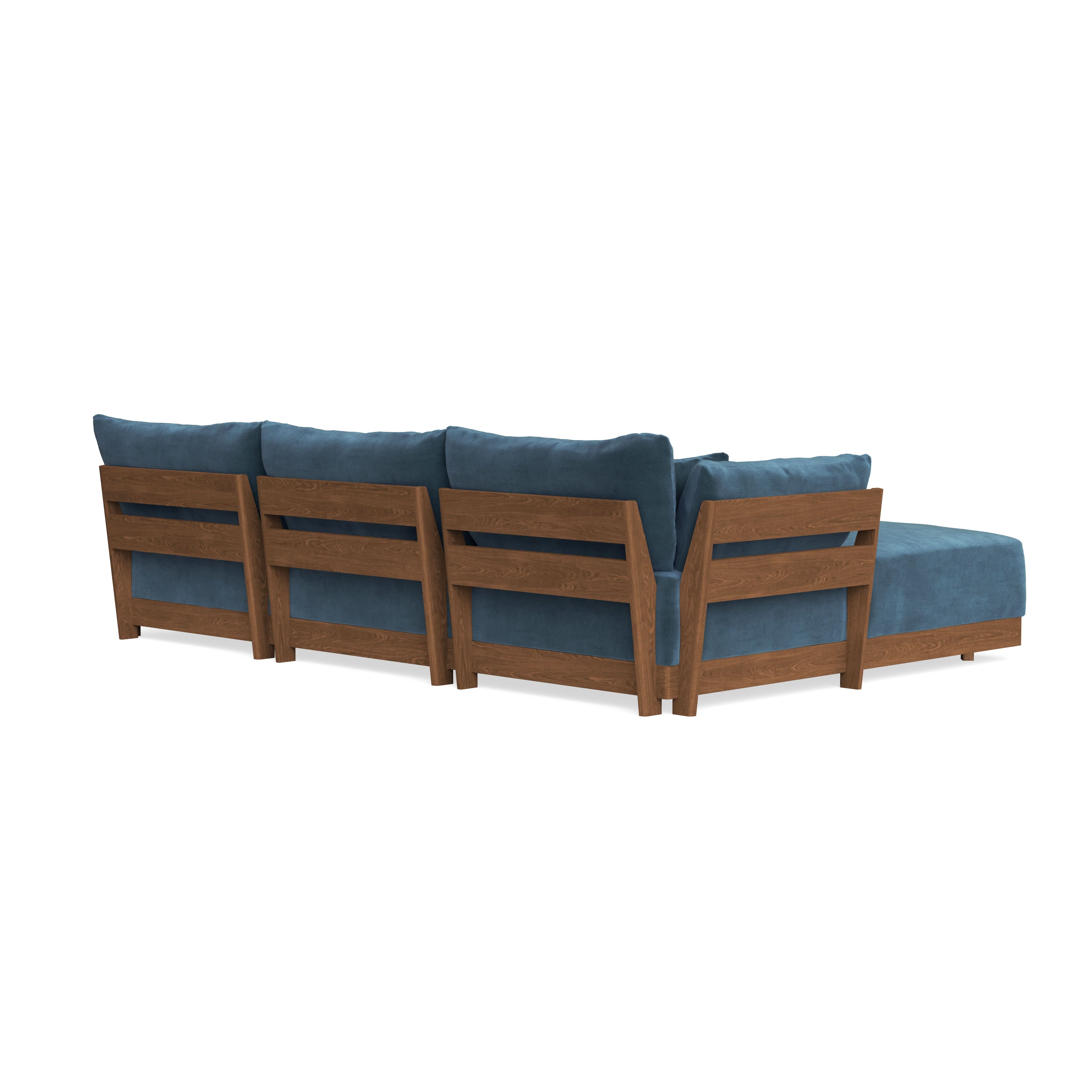 Made to move and adapt with your ever-changing lifestyle. Every patent pending seat block is alike and can be used in the middle, on the end, or as a corner piece in your sofa. Likewise, every slatted solid wood panel is identical and can be used as either an “arm” or a “back”. And the ottomans? Also adaptable! Ottomans can stand alone or serve as an extension to your sofa by connecting to any seat module at its base.