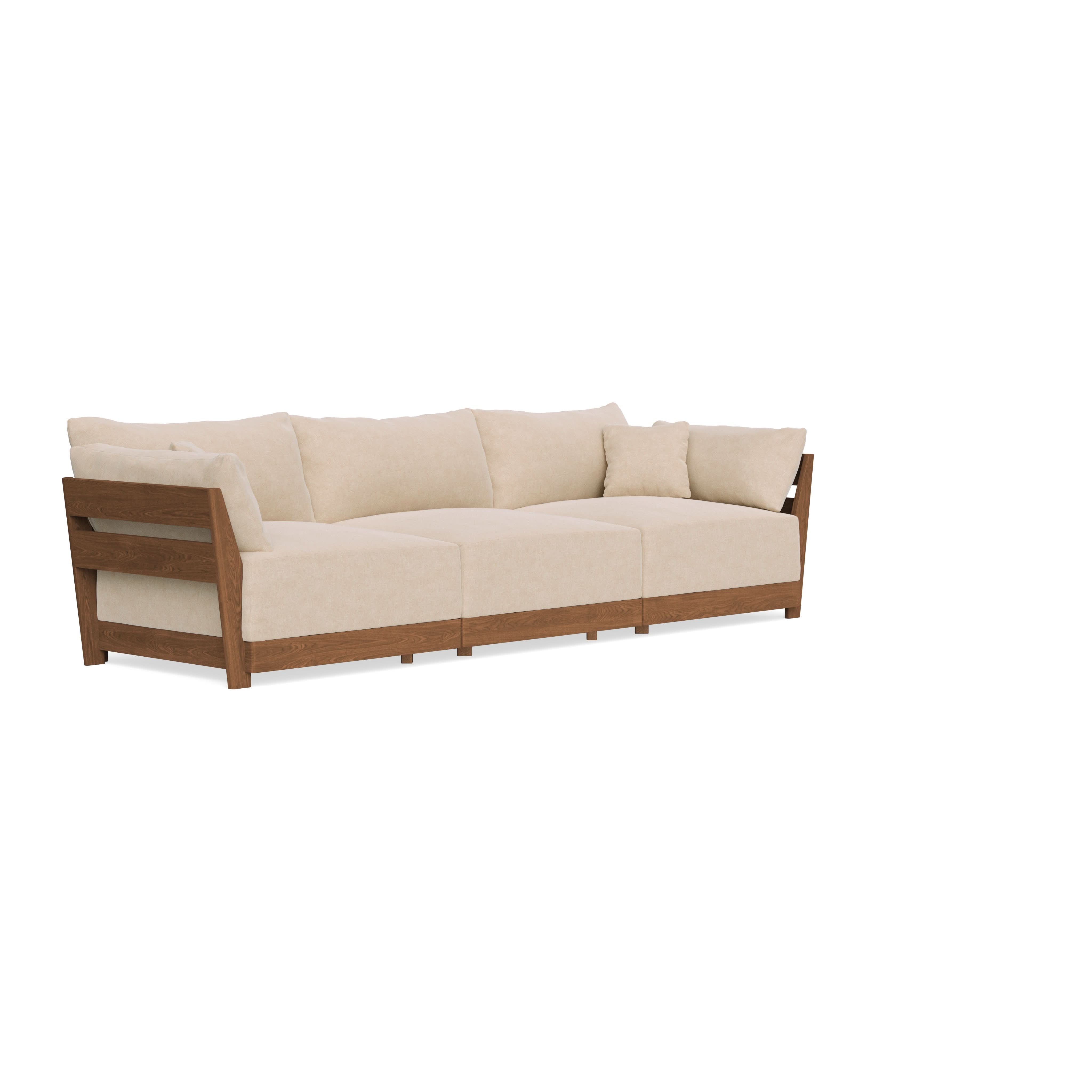 Every seat block is alike and can be used in the middle, on the end, or as a corner piece in your sofa. Each solid wood arm/back panel is identical and can be attached to any three sides of a seat block. Ottomans are adaptable too, as they can stand alone or serve as an extension to your sofa by being attached to any seat block at its base. Note that arm/back panels cannot be attached to an ottoman base.