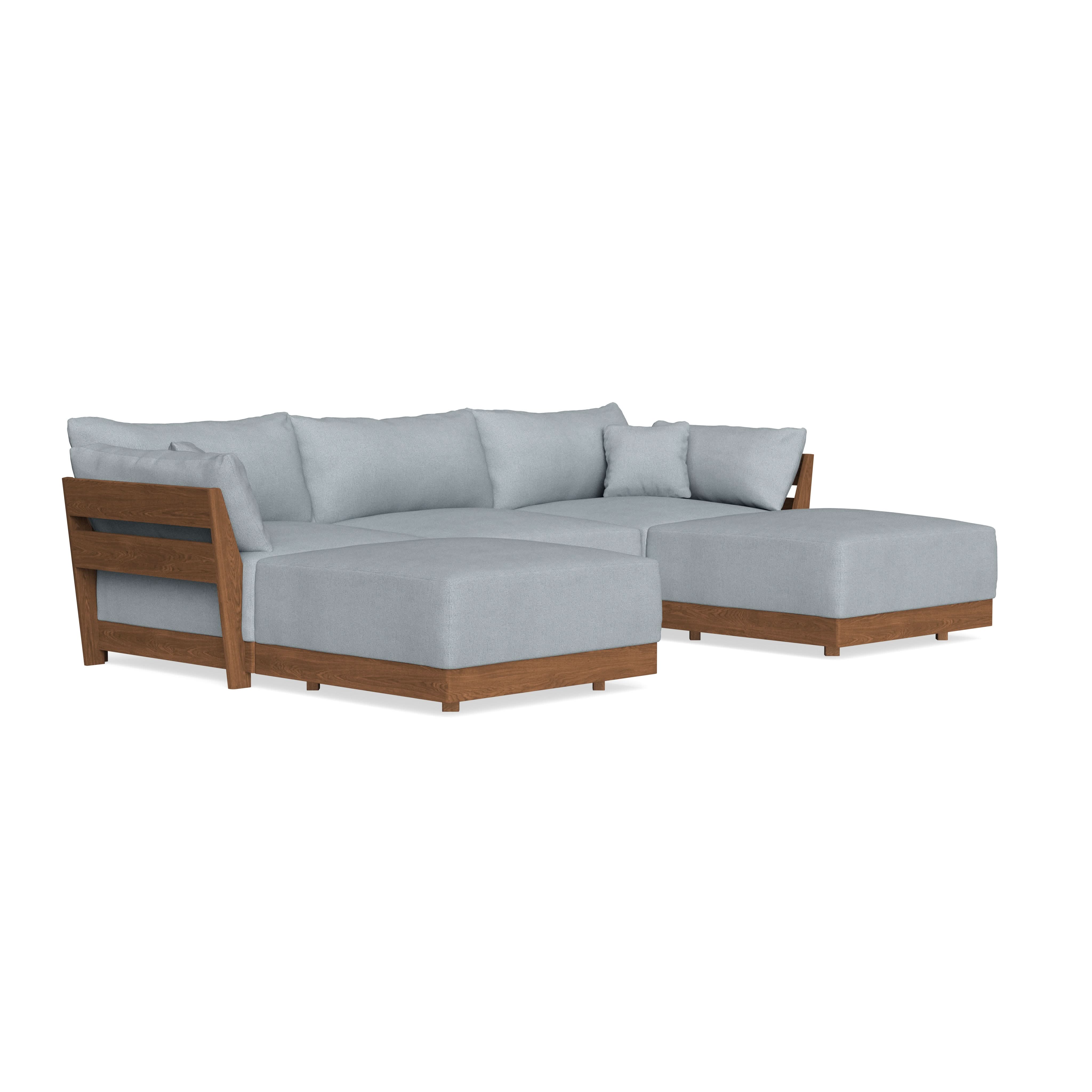 Made to move and adapt with your ever-changing lifestyle. Every patent pending seat block is alike and can be used in the middle, on the end, or as a corner piece in your sofa. Likewise, every slatted solid wood panel is identical and can be used as either an “arm” or a “back”. And the ottomans? Also adaptable! Ottomans can stand alone or serve as an extension to your sofa by connecting to any seat module at its base.