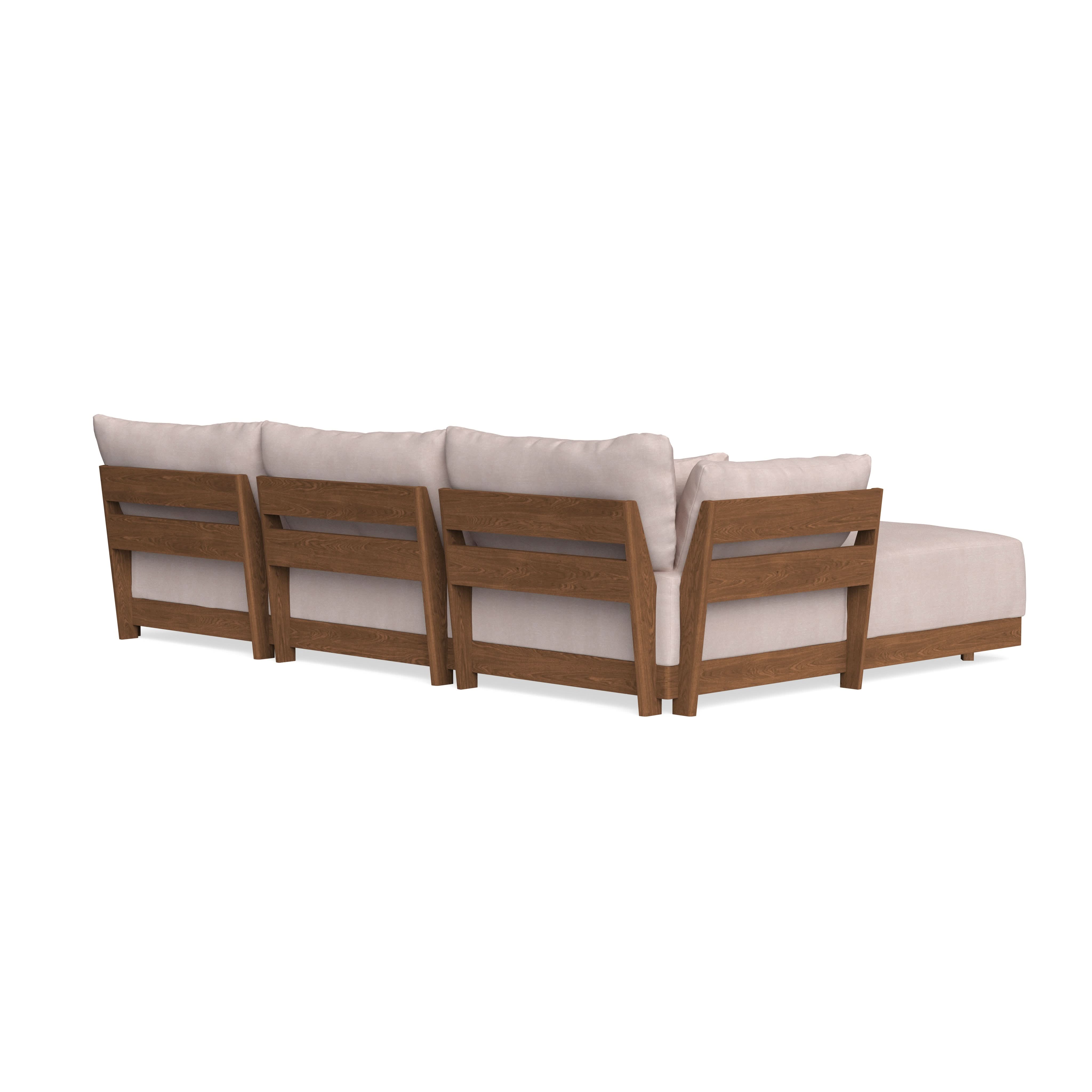 Every seat block is alike and can be used in the middle, on the end, or as a corner piece in your sofa. Each solid wood arm/back panel is identical and can be attached to any three sides of a seat block. Ottomans are adaptable too, as they can stand alone or serve as an extension to your sofa by being attached to any seat block at its base. Note that arm/back panels cannot be attached to an ottoman base.