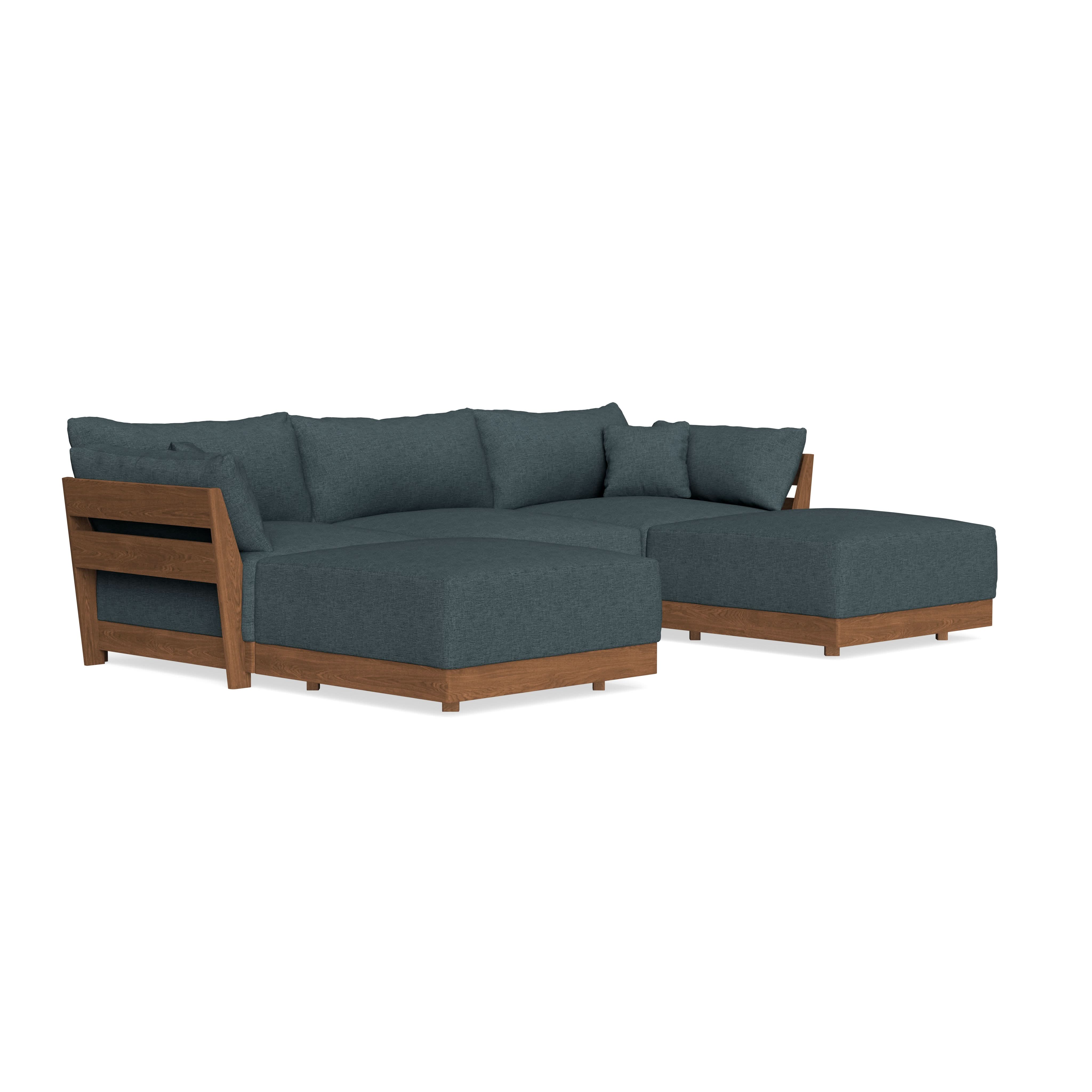 Made to move and adapt with your ever-changing lifestyle. Every patent pending seat block is alike and can be used in the middle, on the end, or as a corner piece in your sofa. Likewise, every slatted solid wood panel is identical and can be used as either an “arm” or a “back”. And the ottomans? Also adaptable! Ottomans can stand alone or serve as an extension to your sofa by connecting to any seat module at its base.
