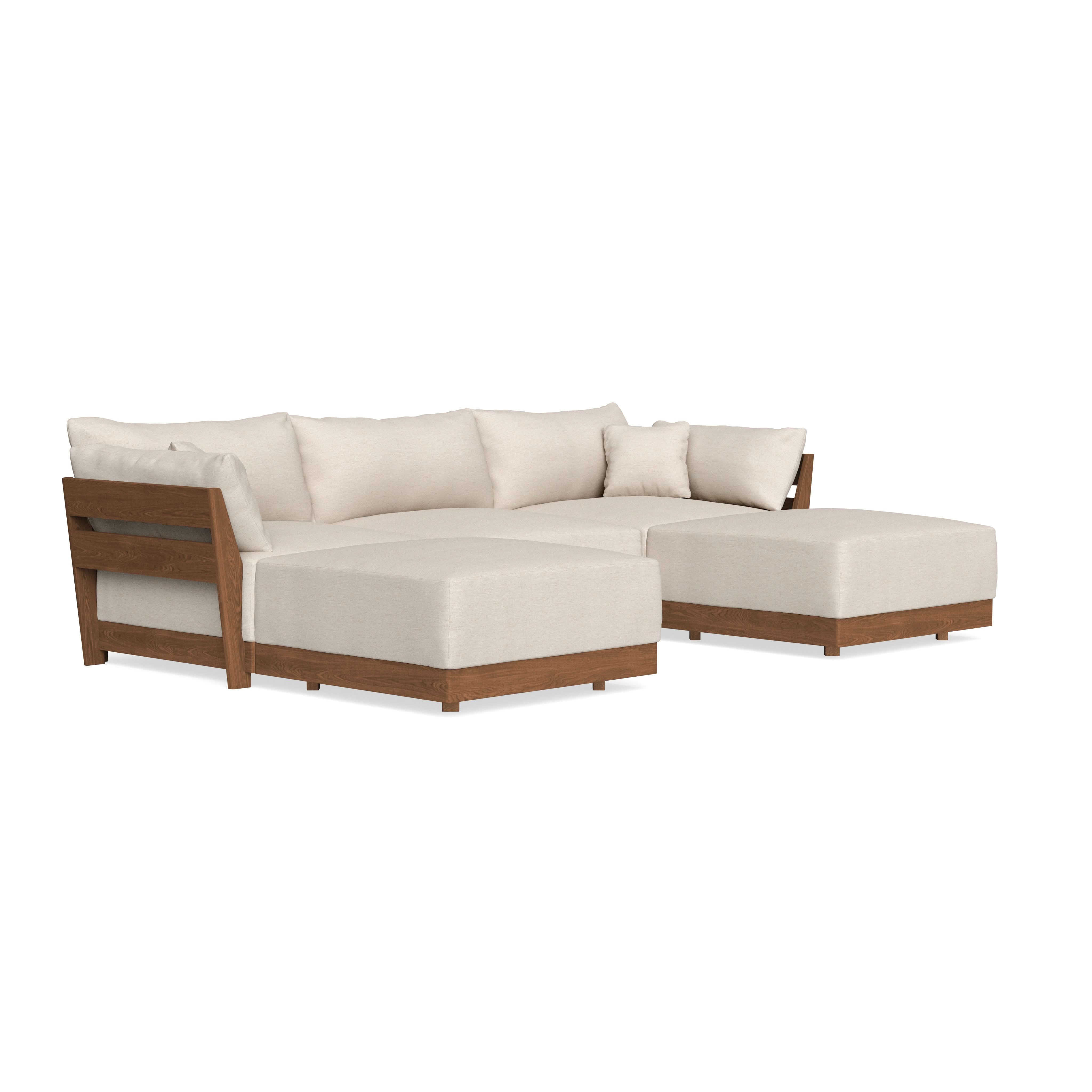 Made to move and adapt with your ever-changing lifestyle. Every patent pending seat block is alike and can be used in the middle, on the end, or as a corner piece in your sofa. Likewise, every slatted solid wood panel is identical and can be used as either an “arm” or a “back”. And the ottomans? Also adaptable! Ottomans can stand alone or serve as an extension to your sofa by connecting to any seat module at its base.