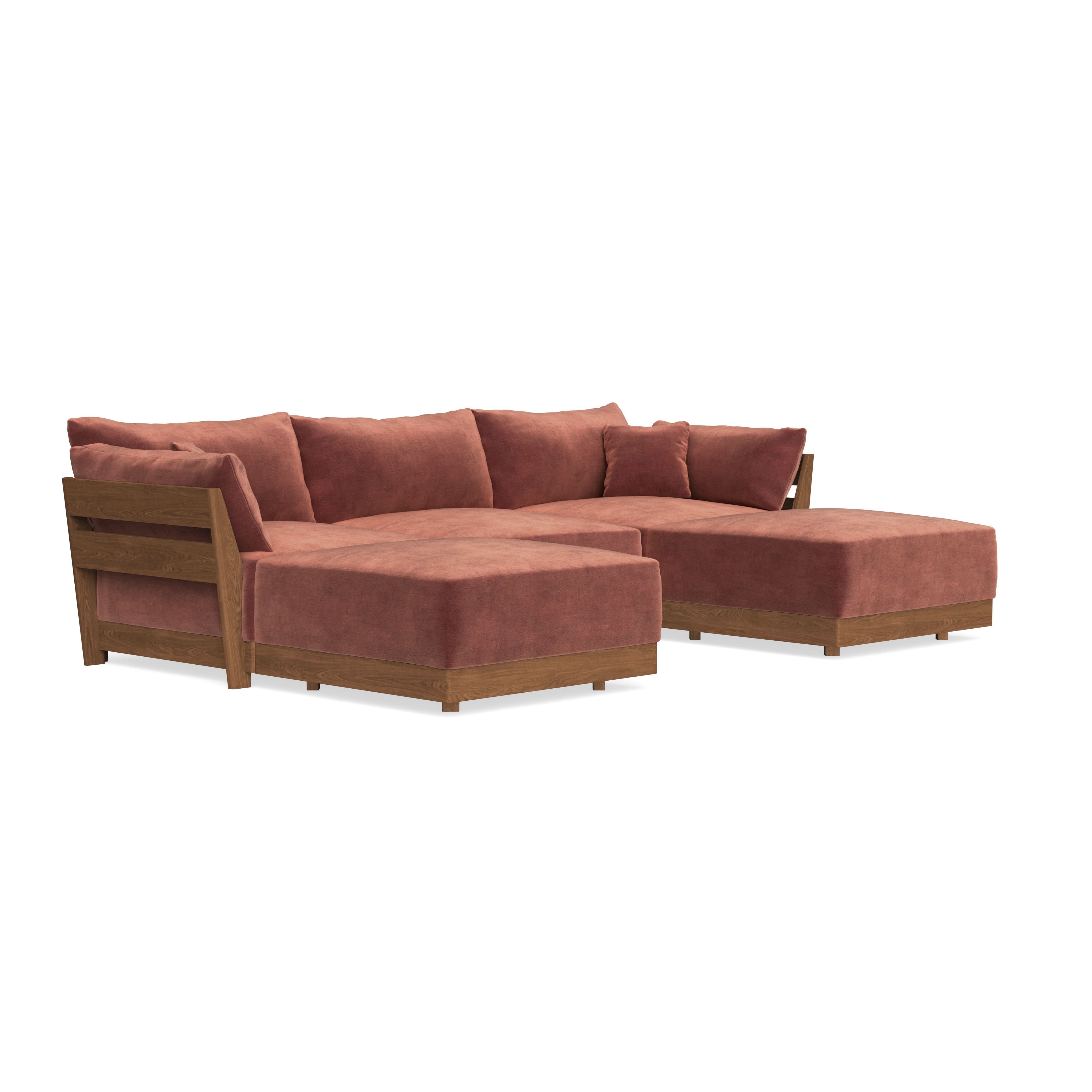 Made to move and adapt with your ever-changing lifestyle. Every patent pending seat block is alike and can be used in the middle, on the end, or as a corner piece in your sofa. Likewise, every slatted solid wood panel is identical and can be used as either an “arm” or a “back”. And the ottomans? Also adaptable! Ottomans can stand alone or serve as an extension to your sofa by connecting to any seat module at its base.