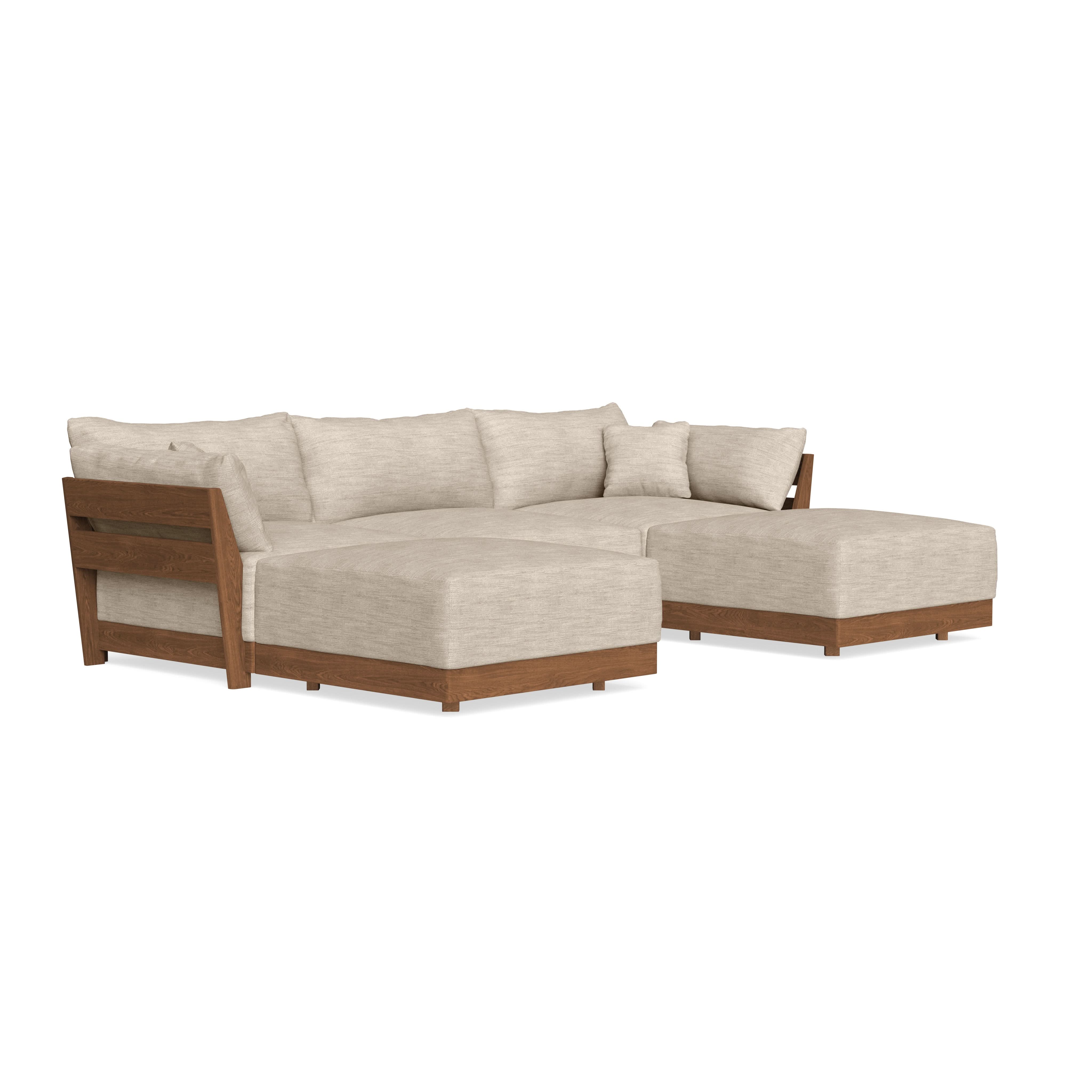Every seat block is alike and can be used in the middle, on the end, or as a corner piece in your sofa. Each solid wood arm/back panel is identical and can be attached to any three sides of a seat block. Ottomans are adaptable too, as they can stand alone or serve as an extension to your sofa by being attached to any seat block at its base. Note that arm/back panels cannot be attached to an ottoman base.
