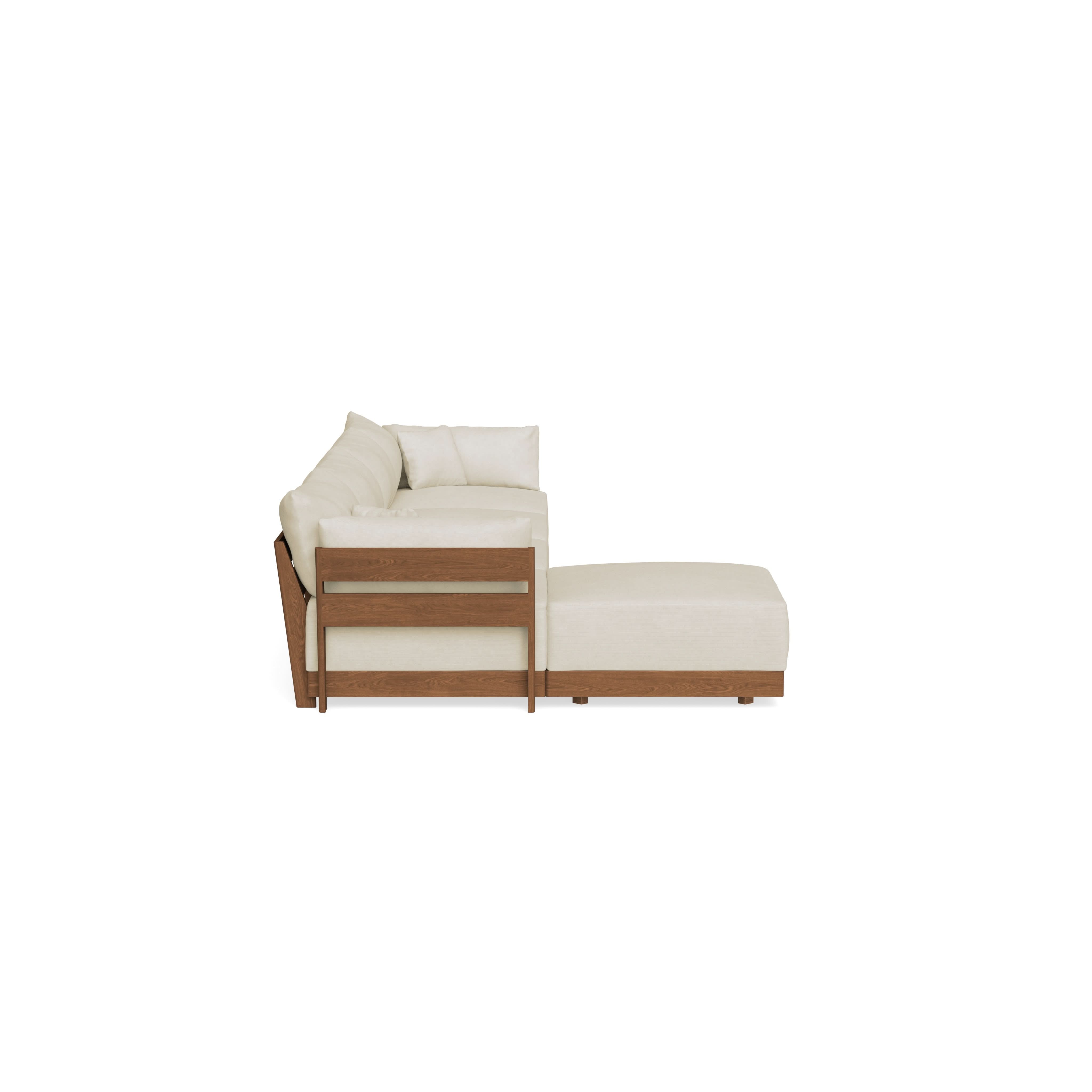 Made to move and adapt with your ever-changing lifestyle. Every patent pending seat block is alike and can be used in the middle, on the end, or as a corner piece in your sofa. Likewise, every slatted solid wood panel is identical and can be used as either an “arm” or a “back”. And the ottomans? Also adaptable! Ottomans can stand alone or serve as an extension to your sofa by connecting to any seat module at its base.