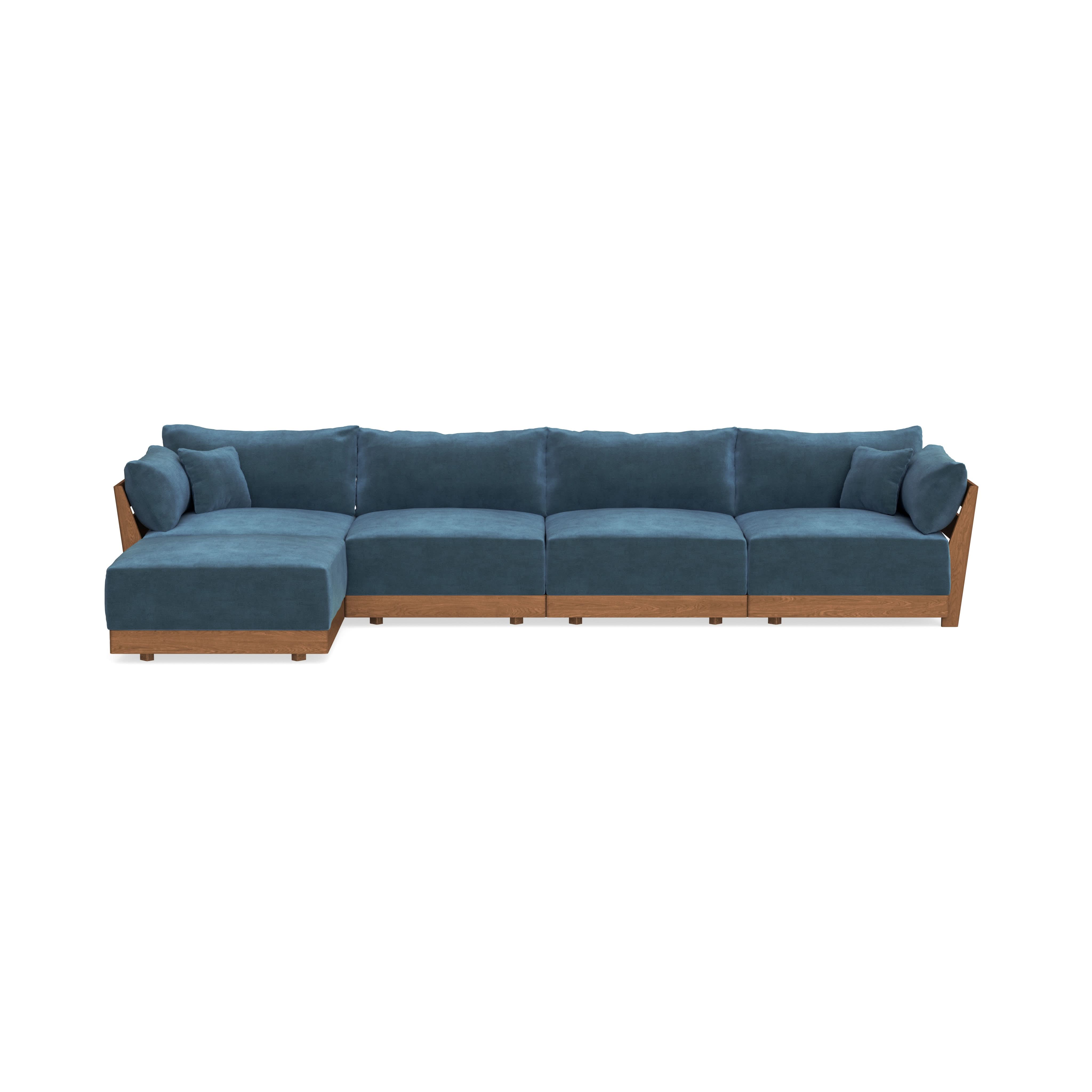 Modular Bondi Espresso 4-Seater Sectional in Oxford Blue | Memory Foam Blend