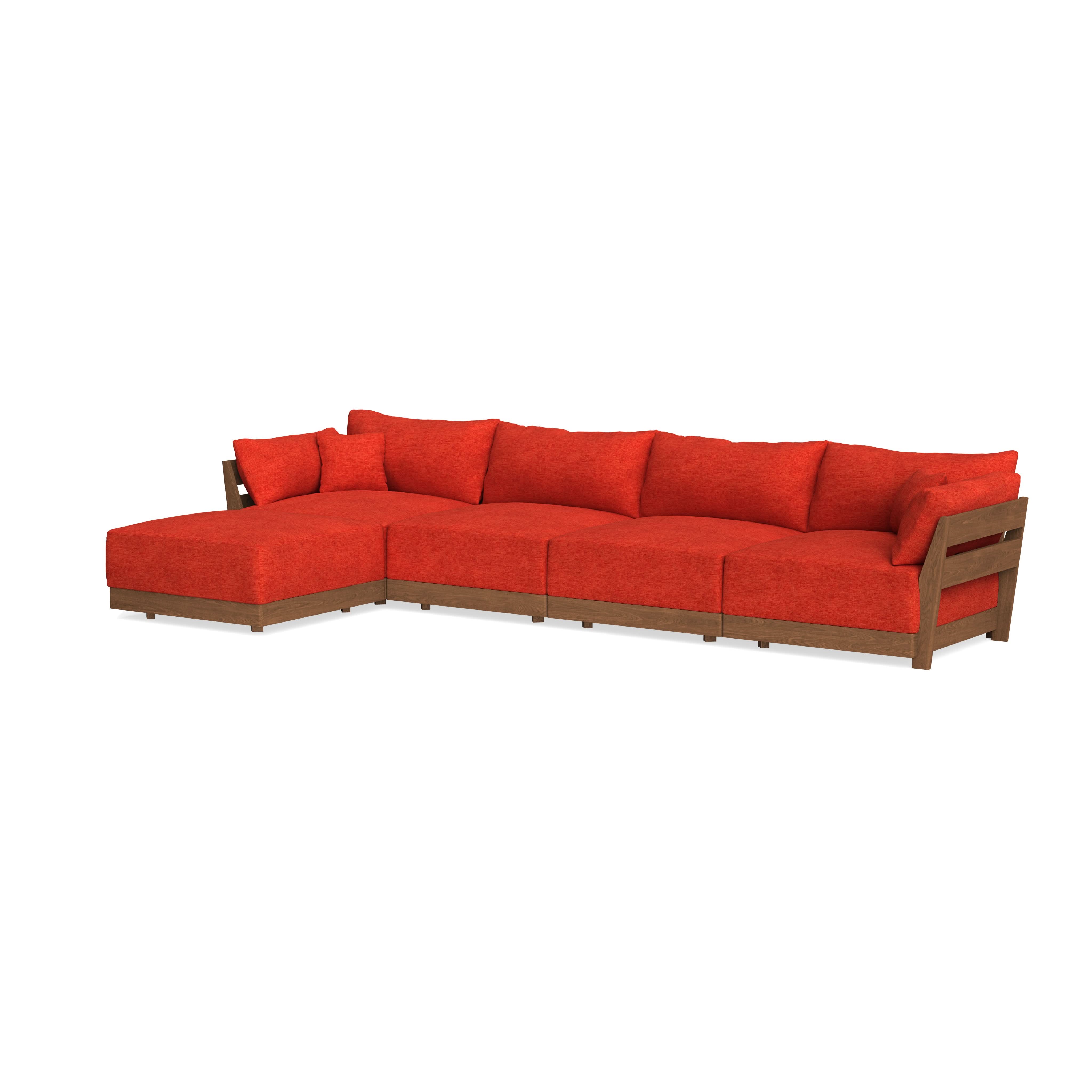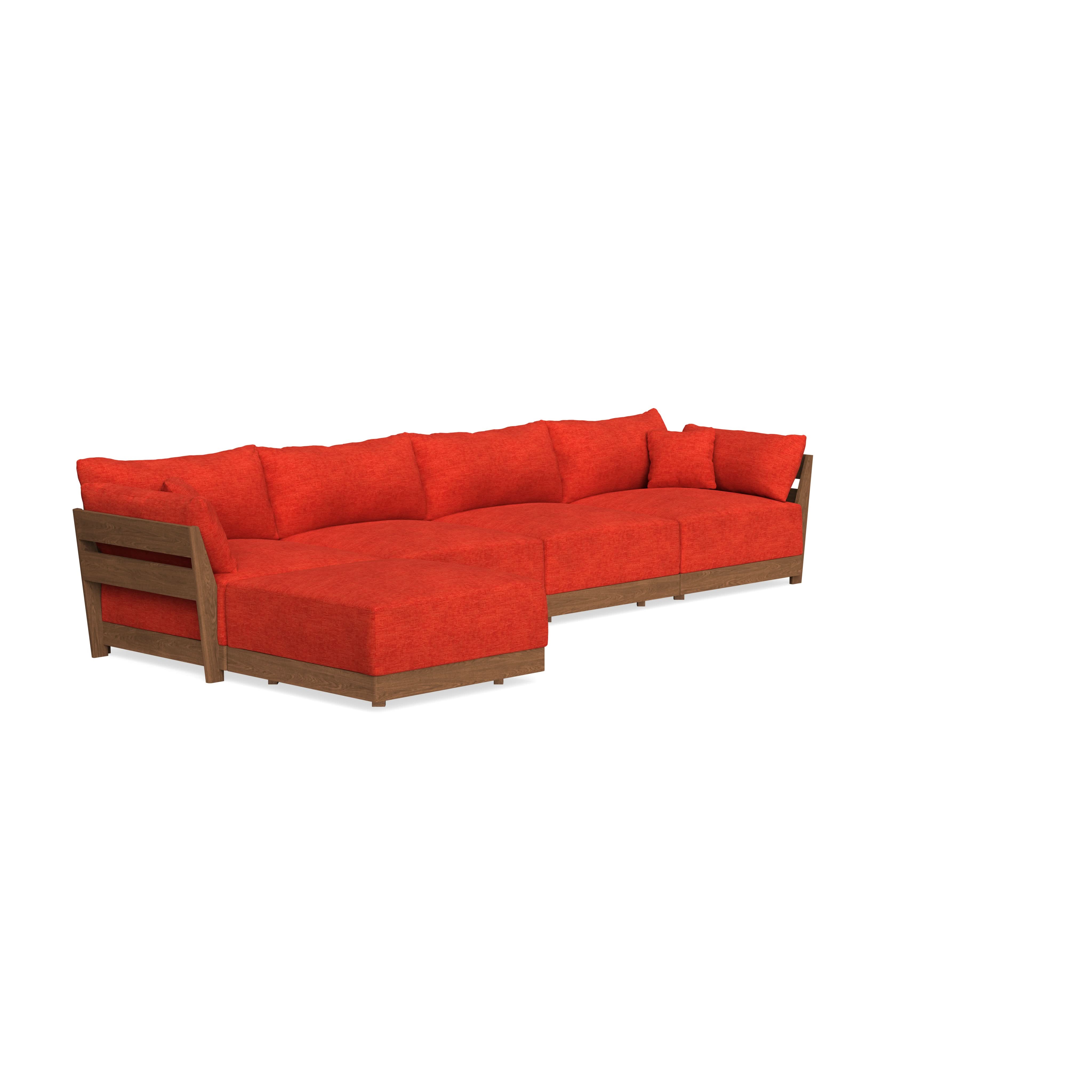 Modular Bondi Espresso 4-Seater Sectional in Poppy Orange | Memory Foam Blend