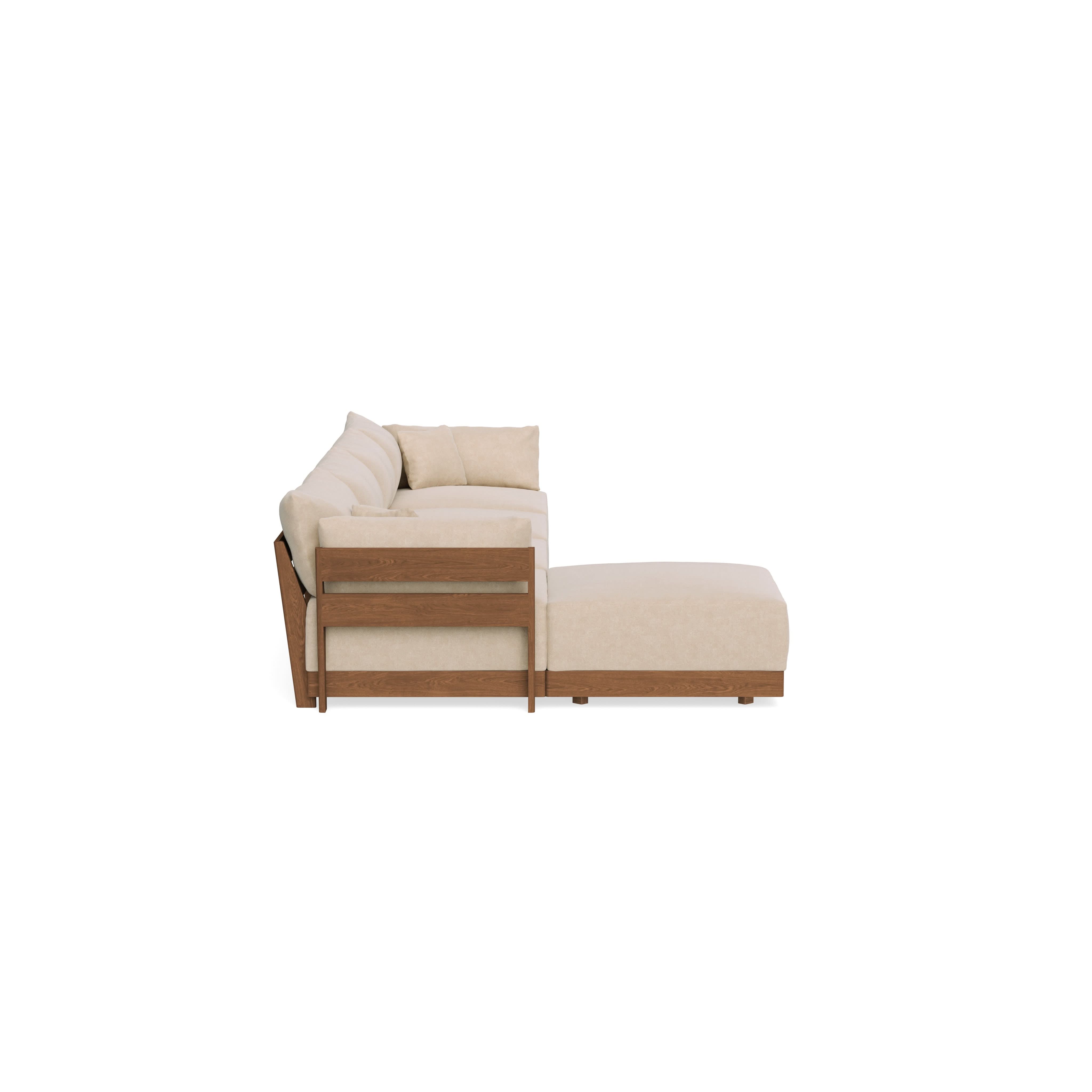 Made to move and adapt with your ever-changing lifestyle. Every patent pending seat block is alike and can be used in the middle, on the end, or as a corner piece in your sofa. Likewise, every slatted solid wood panel is identical and can be used as either an “arm” or a “back”. And the ottomans? Also adaptable! Ottomans can stand alone or serve as an extension to your sofa by connecting to any seat module at its base.